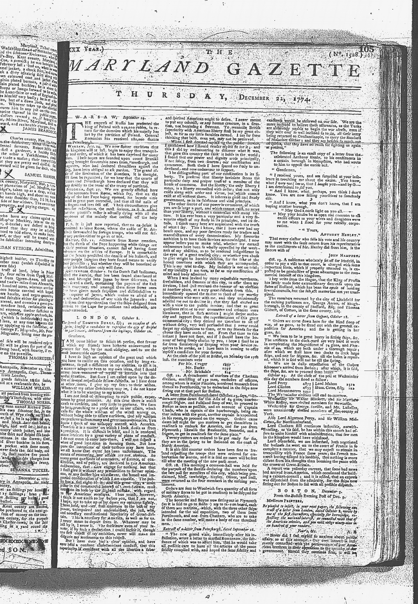Maryland Gazette Collection MSA SC 2731 January 9, 1772 - September 10, 1779 M 1282 A Publication of the Archives of Maryland Online Image 754 Enlarge and print image (6M) |