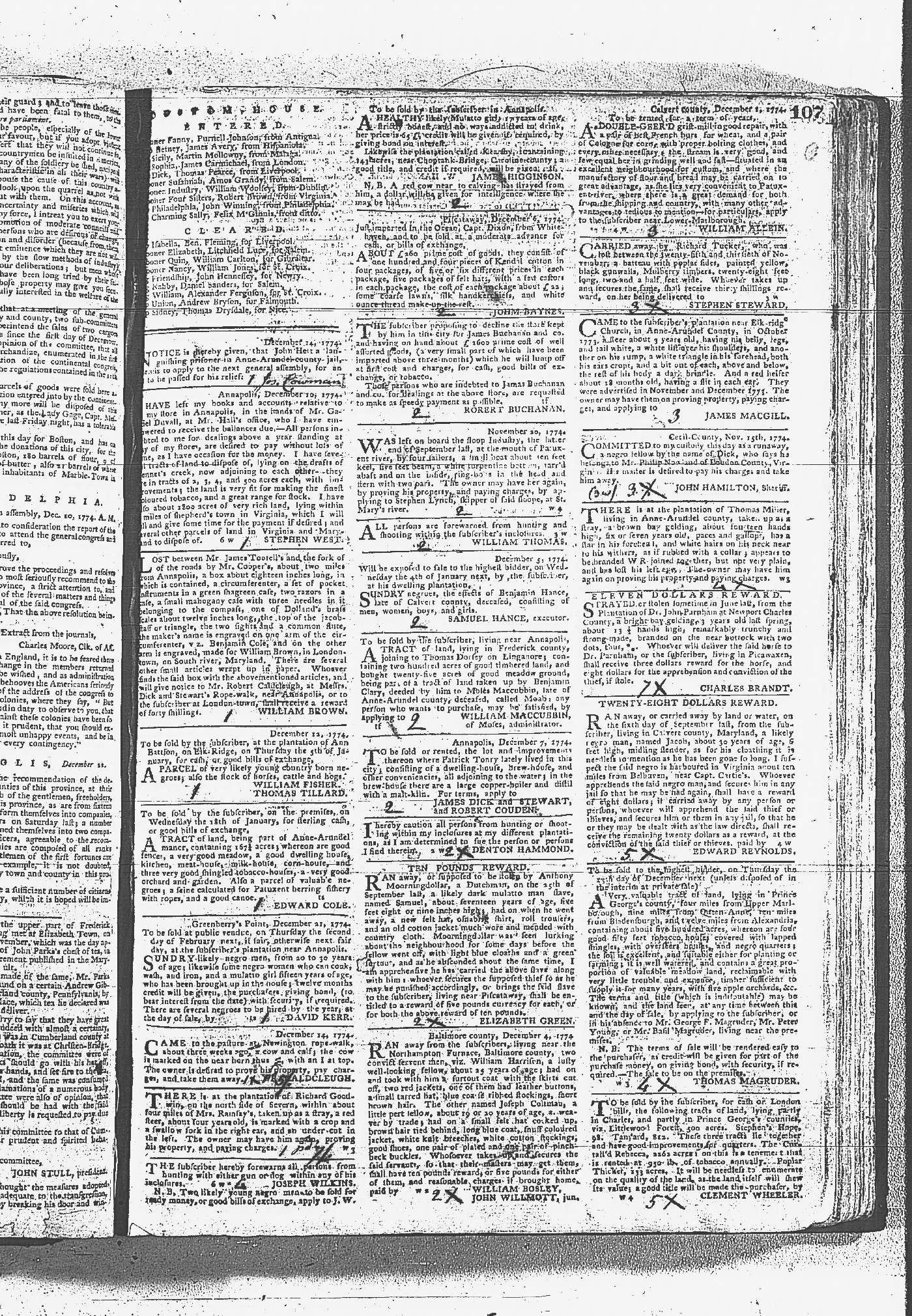 Maryland Gazette Collection MSA SC 2731 January 9, 1772 - September 10, 1779 M 1282 A Publication of the Archives of Maryland Online Image 756 Enlarge and print image (6M) |