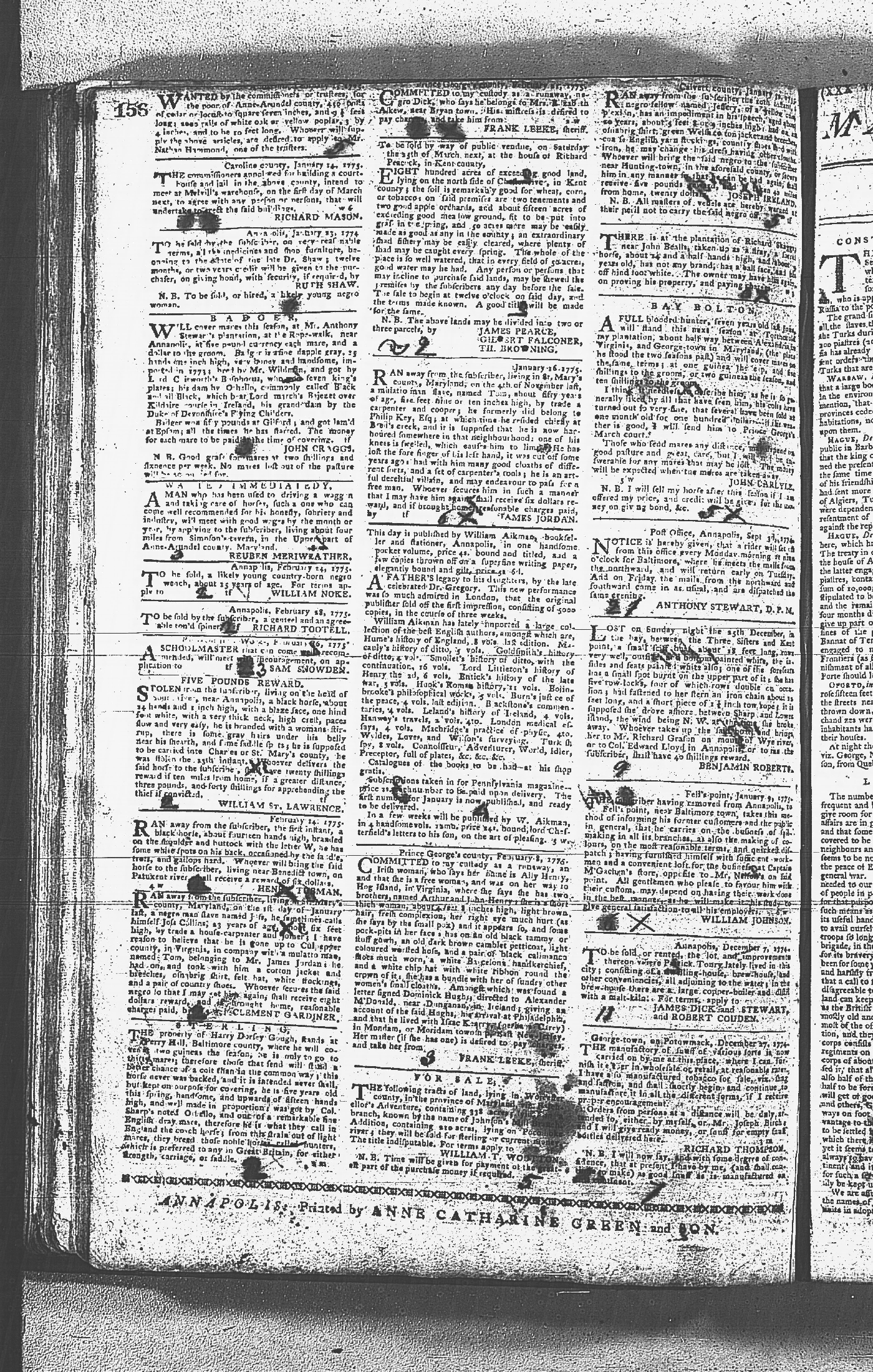 Maryland Gazette Collection MSA SC 2731 January 9, 1772 - September 10, 1779 M 1282 A Publication of the Archives of Maryland Online Image 814 Enlarge and print image (6M) |