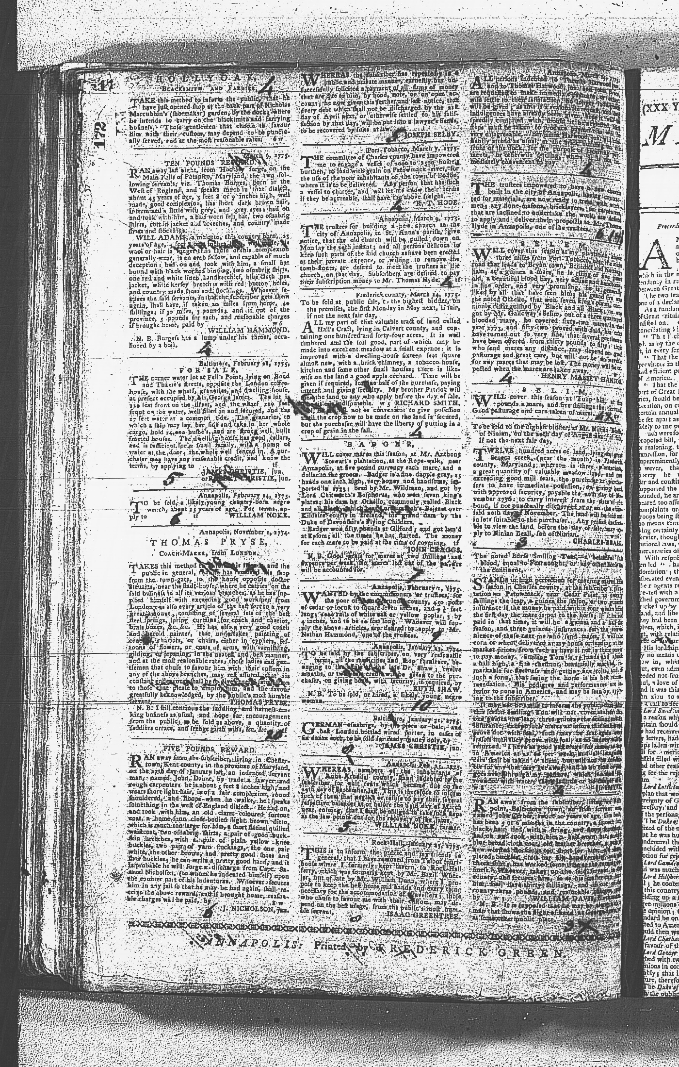 Maryland Gazette Collection MSA SC 2731 January 9, 1772 - September 10, 1779 M 1282 A Publication of the Archives of Maryland Online Image 836 Enlarge and print image (7M) |