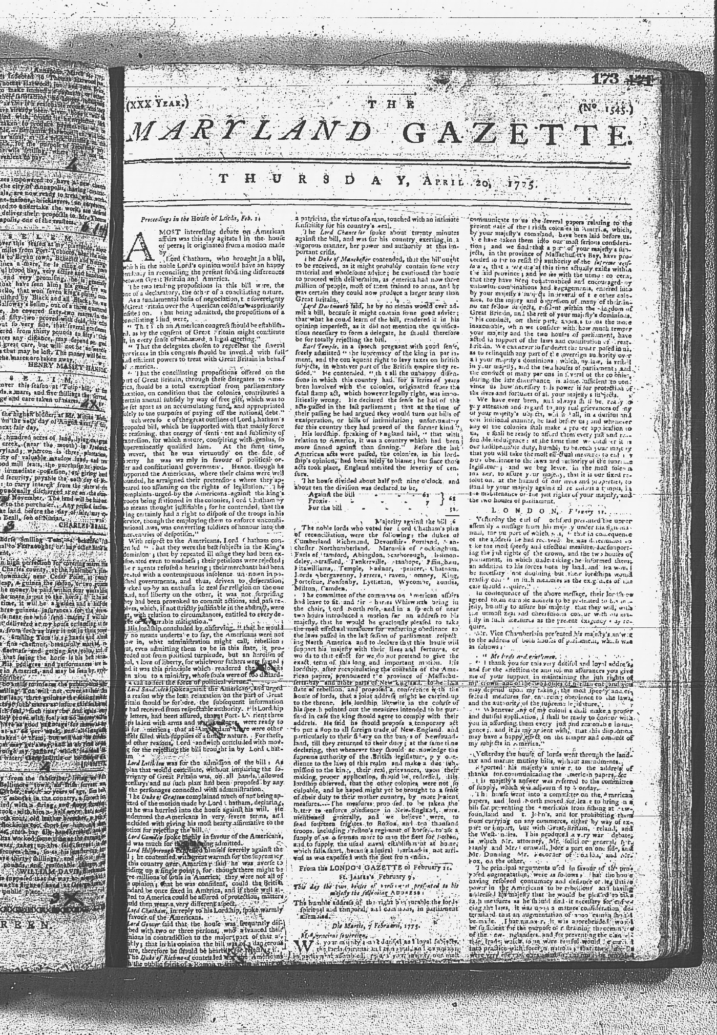 Maryland Gazette Collection MSA SC 2731 January 9, 1772 - September 10, 1779 M 1282 A Publication of the Archives of Maryland Online Image 837 Enlarge and print image (7M) |