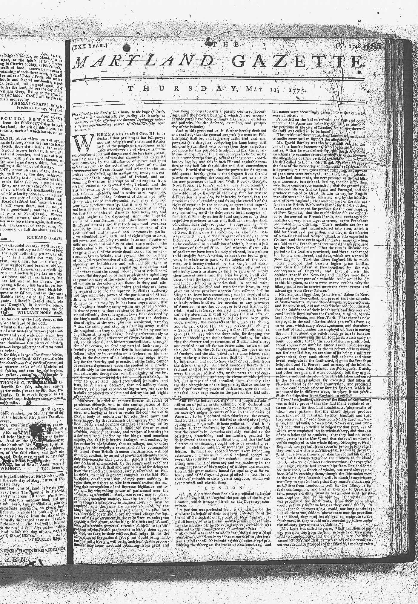 Maryland Gazette Collection MSA SC 2731 January 9, 1772 - September 10, 1779 M 1282 A Publication of the Archives of Maryland Online Image 853 Enlarge and print image (6M) |