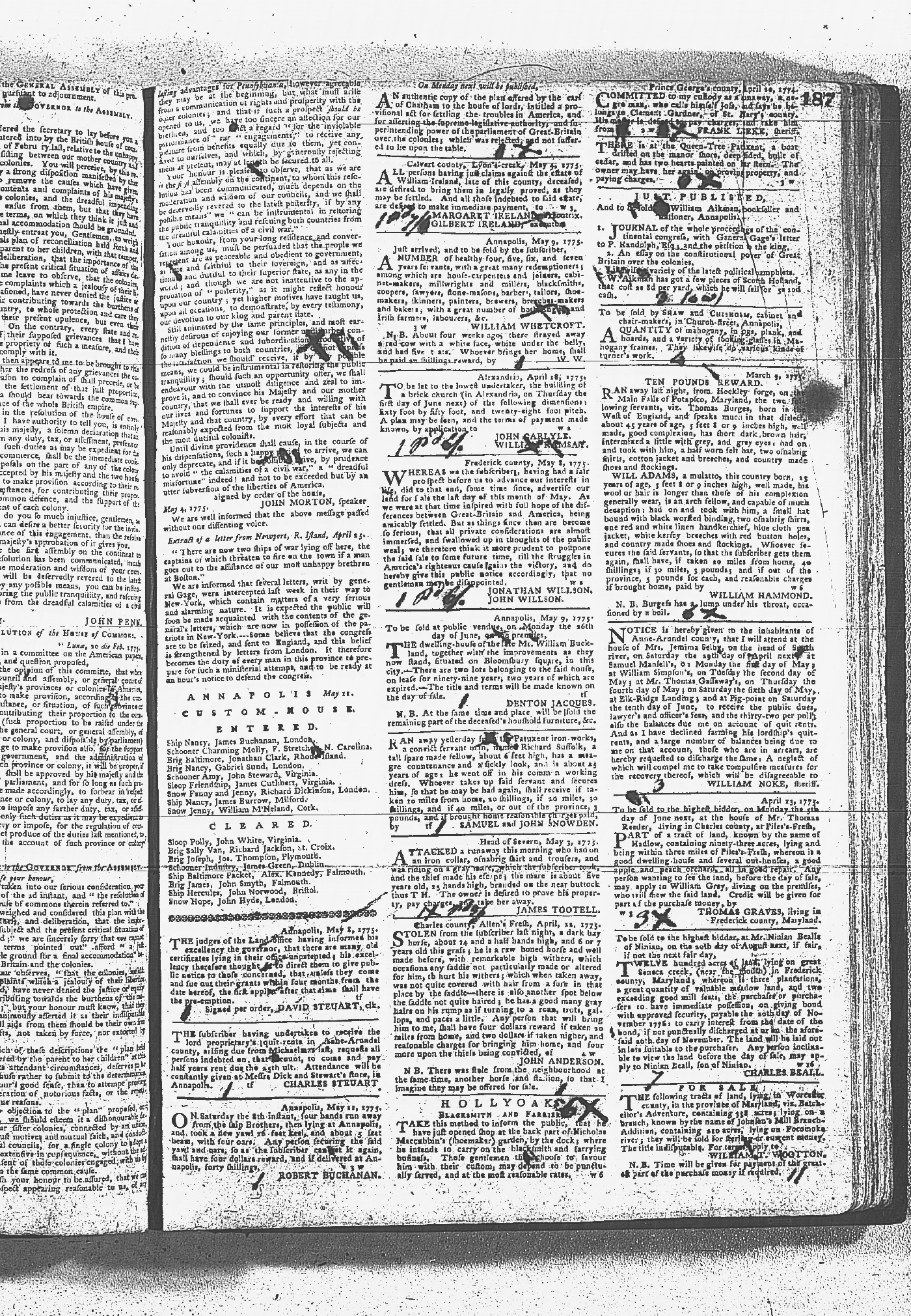 Maryland Gazette Collection MSA SC 2731 January 9, 1772 - September 10, 1779 M 1282 A Publication of the Archives of Maryland Online Image 855 Enlarge and print image (6M) |