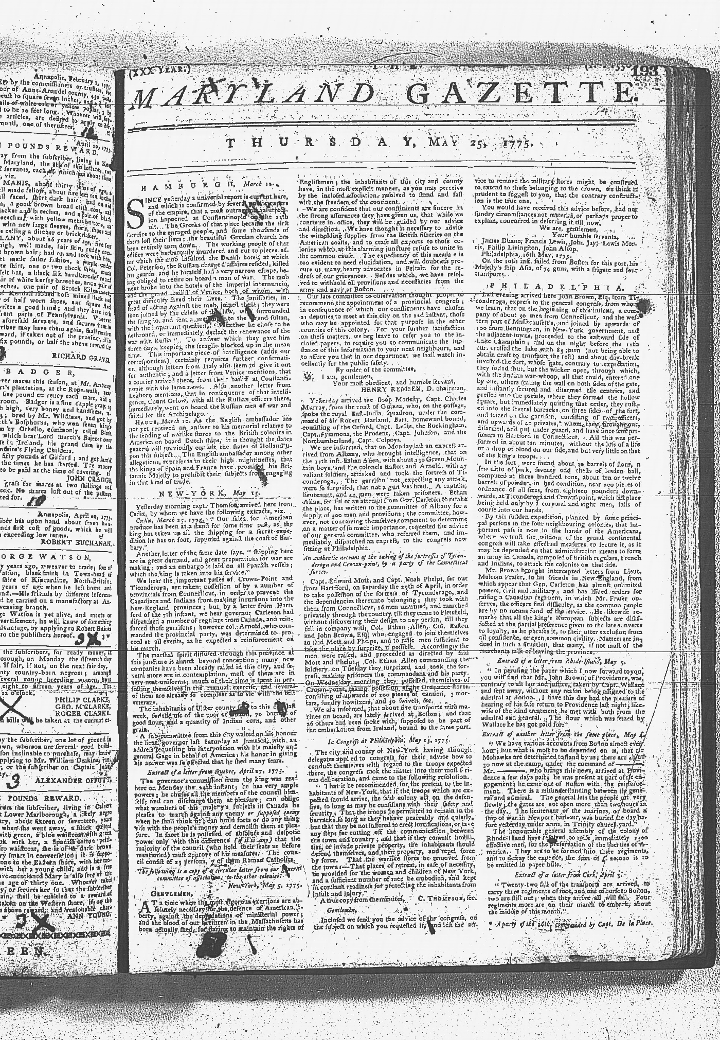 Maryland Gazette Collection MSA SC 2731 January 9, 1772 - September 10, 1779 M 1282 A Publication of the Archives of Maryland Online Image 861 Enlarge and print image (6M) |