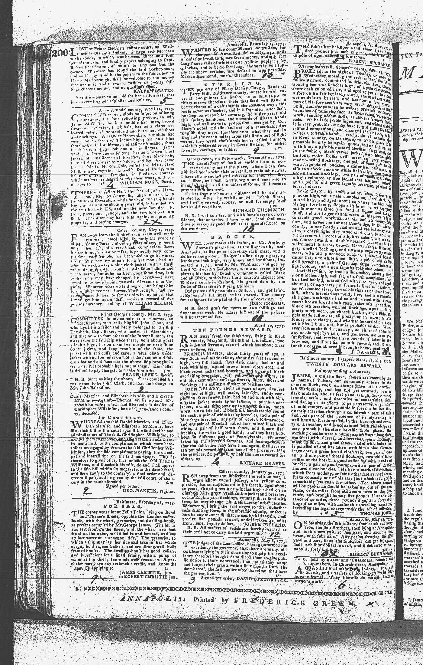 Maryland Gazette Collection MSA SC 2731 January 9, 1772 - September 10, 1779 M 1282 A Publication of the Archives of Maryland Online Image 868 Enlarge and print image (5M) |
