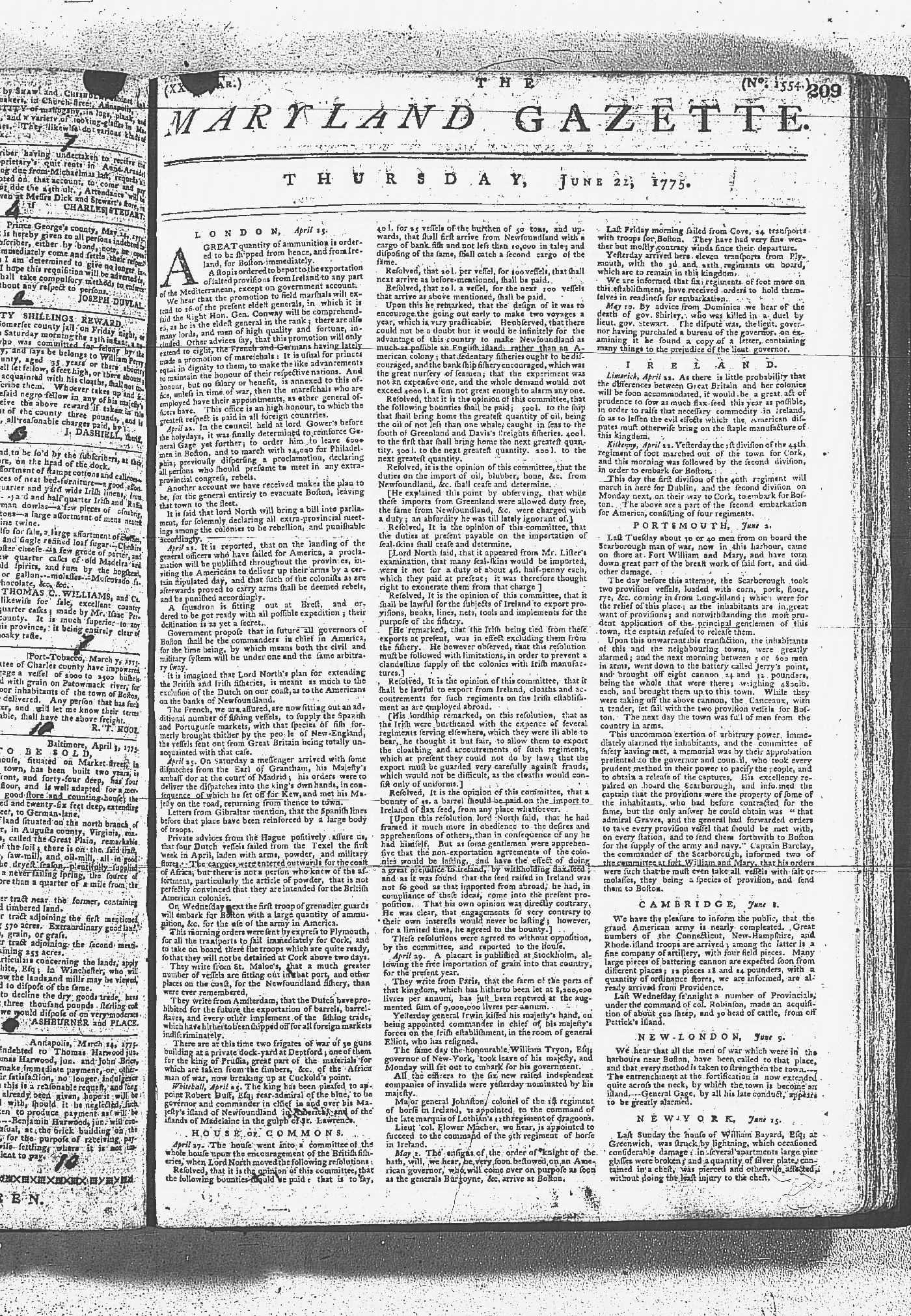 Maryland Gazette Collection MSA SC 2731 January 9, 1772 - September 10, 1779 M 1282 A Publication of the Archives of Maryland Online Image 879 Enlarge and print image (6M) |