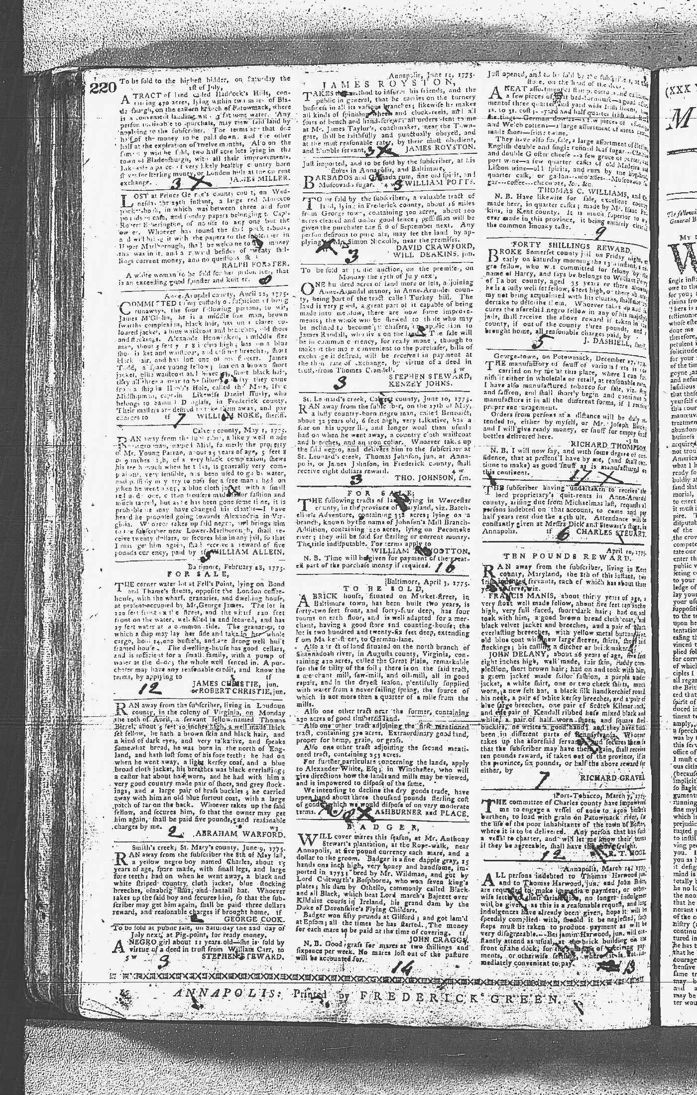 Maryland Gazette Collection MSA SC 2731 January 9, 1772 - September 10, 1779 M 1282 A Publication of the Archives of Maryland Online Image 892 Enlarge and print image (5M) |