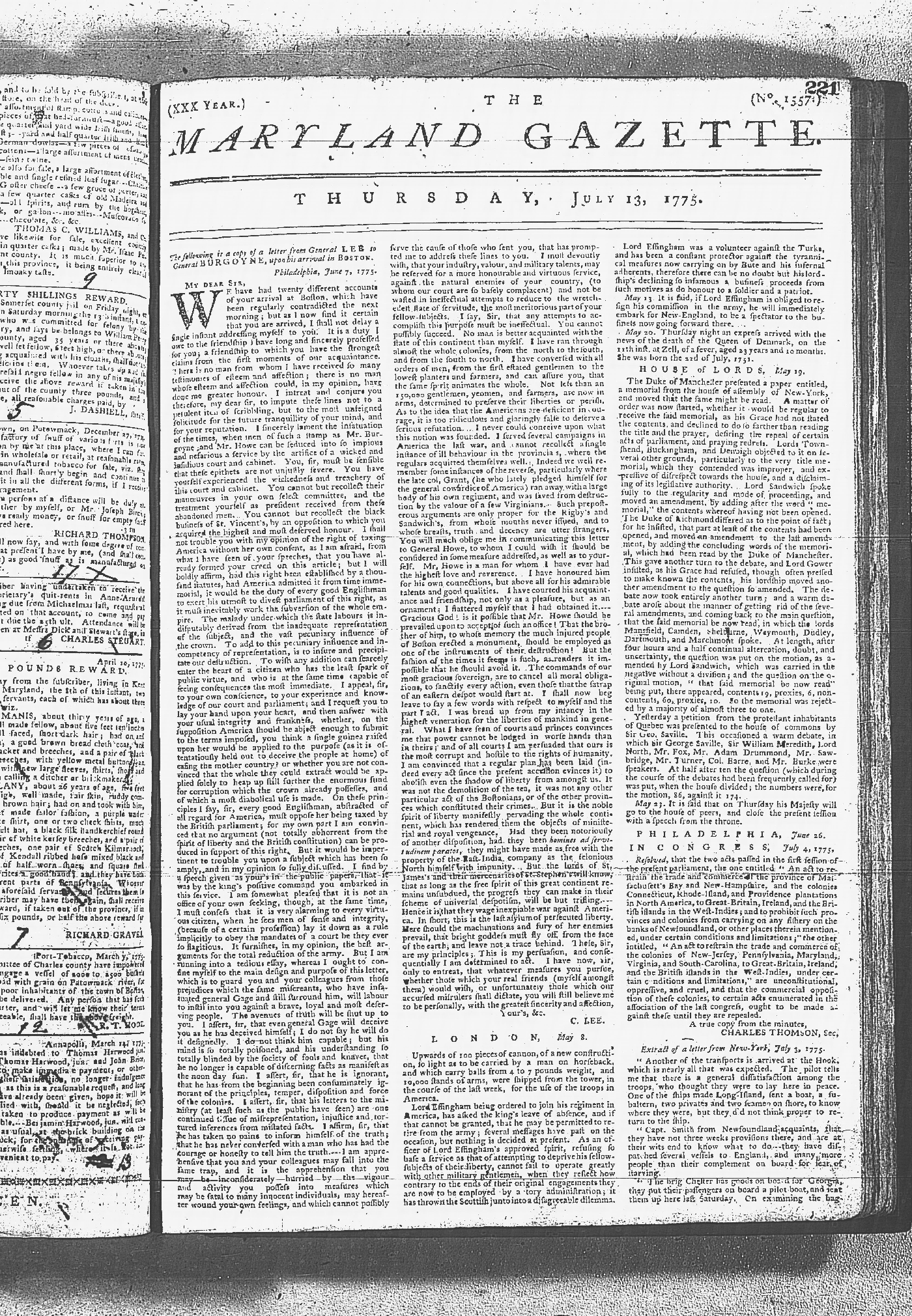 Maryland Gazette Collection MSA SC 2731 January 9, 1772 - September 10, 1779 M 1282 A Publication of the Archives of Maryland Online Image 893 Enlarge and print image (6M) |