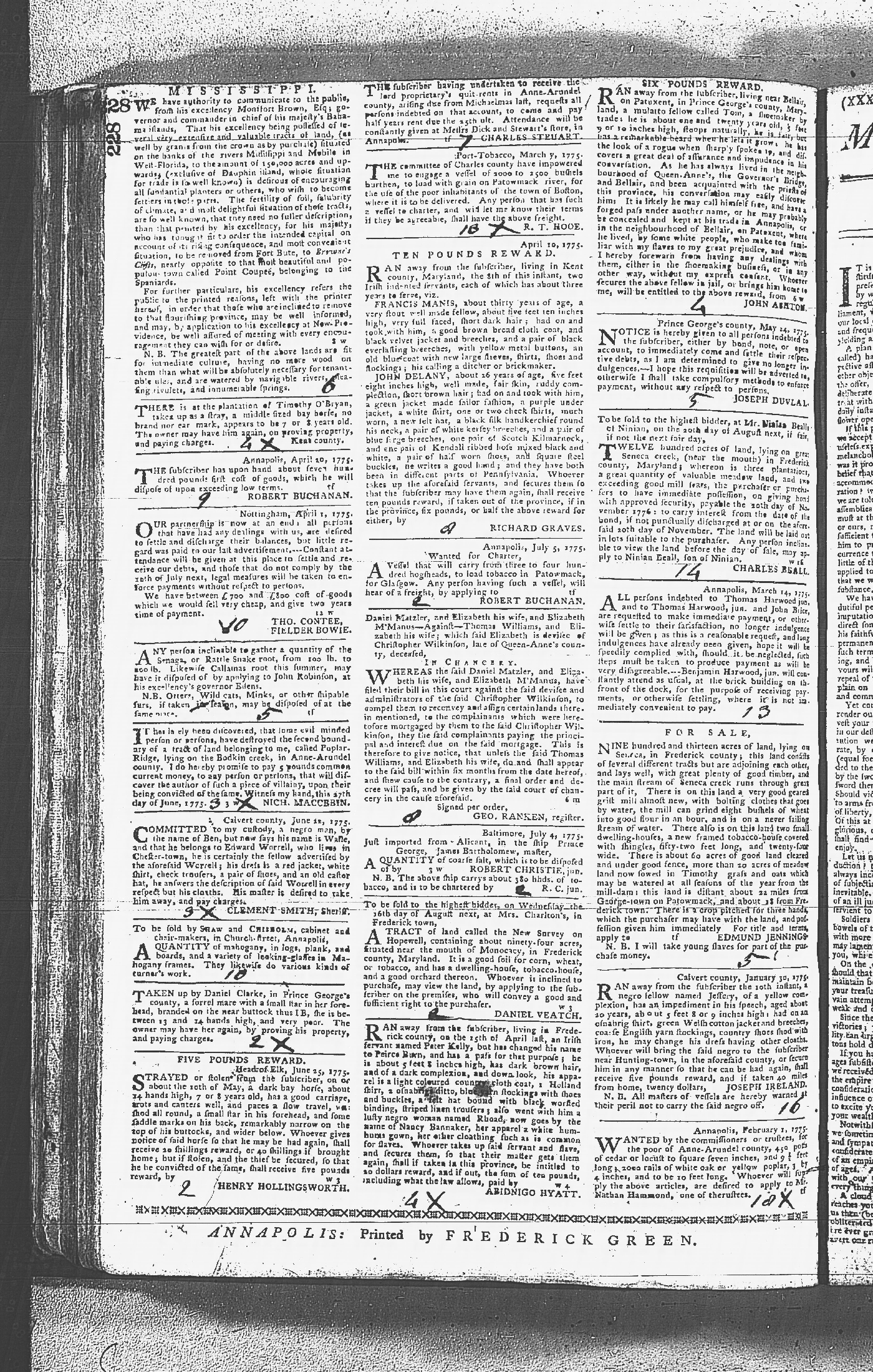 Maryland Gazette Collection MSA SC 2731 January 9, 1772 - September 10, 1779 M 1282 A Publication of the Archives of Maryland Online Image 904 Enlarge and print image (5M) |
