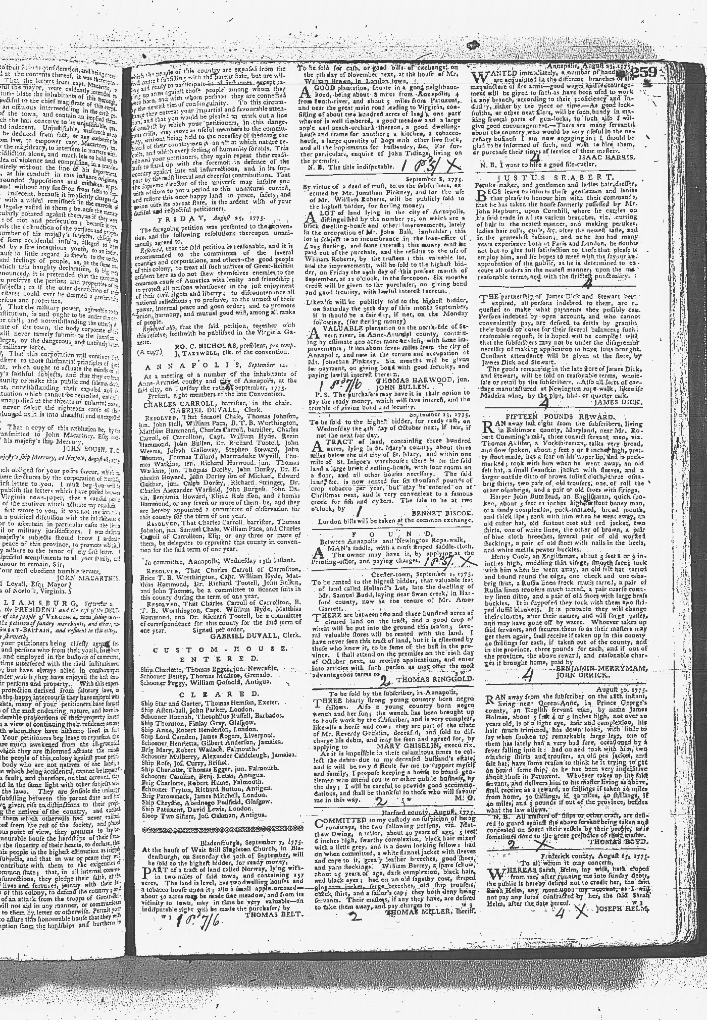 Maryland Gazette Collection MSA SC 2731 January 9, 1772 - September 10, 1779 M 1282 A Publication of the Archives of Maryland Online Image 937 Enlarge and print image (6M) |