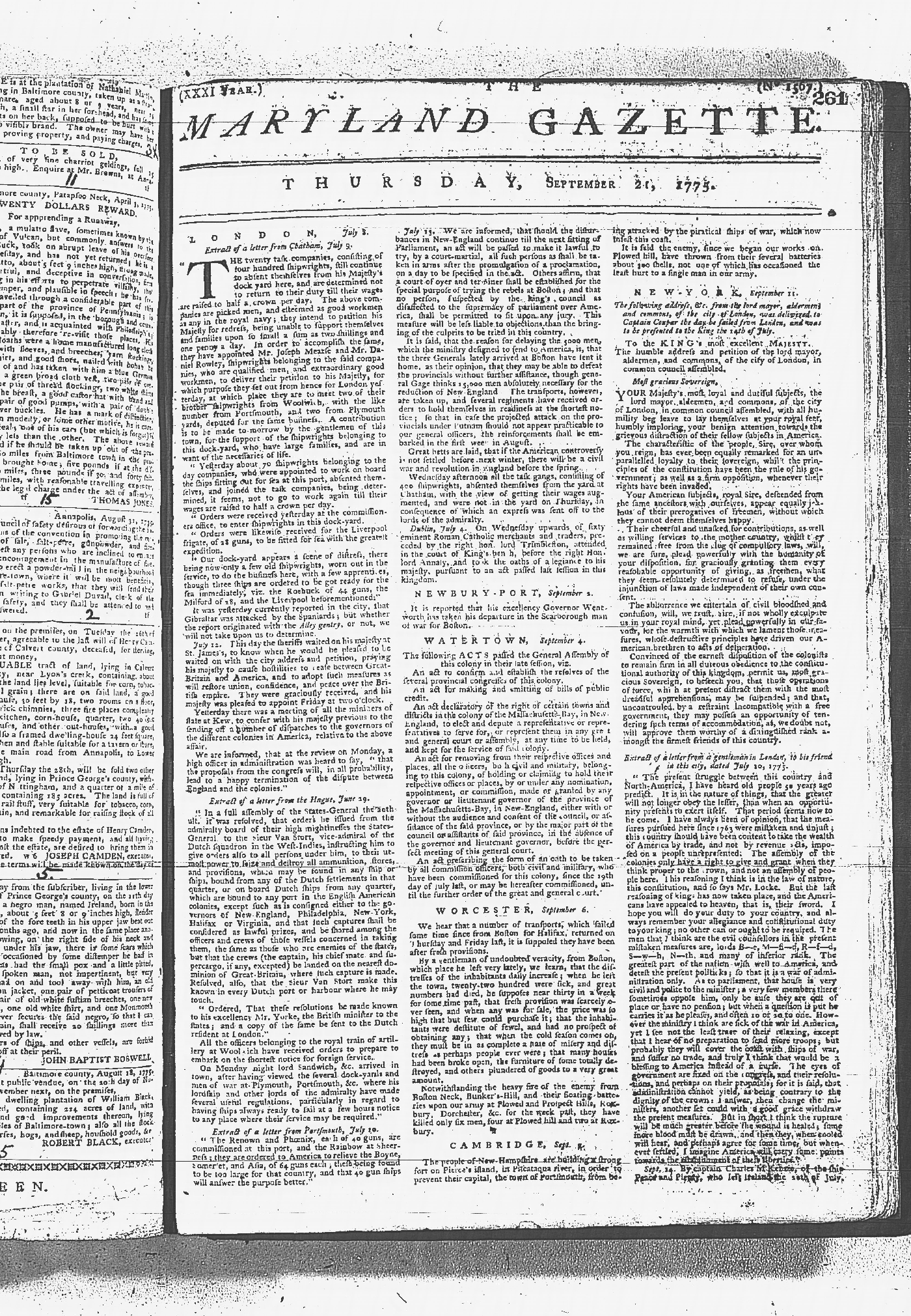 Maryland Gazette Collection MSA SC 2731 January 9, 1772 - September 10, 1779 M 1282 A Publication of the Archives of Maryland Online Image 939 Enlarge and print image (5M) |