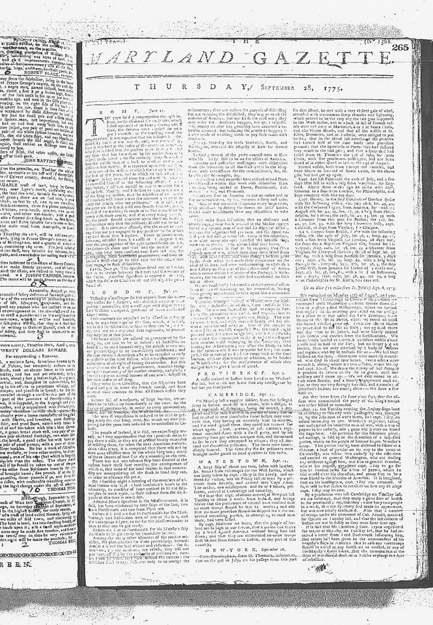Maryland Gazette Collection MSA SC 2731 January 9, 1772 - September 10, 1779 M 1282 A Publication of the Archives of Maryland Online Image 943 Enlarge and print image (5M) |