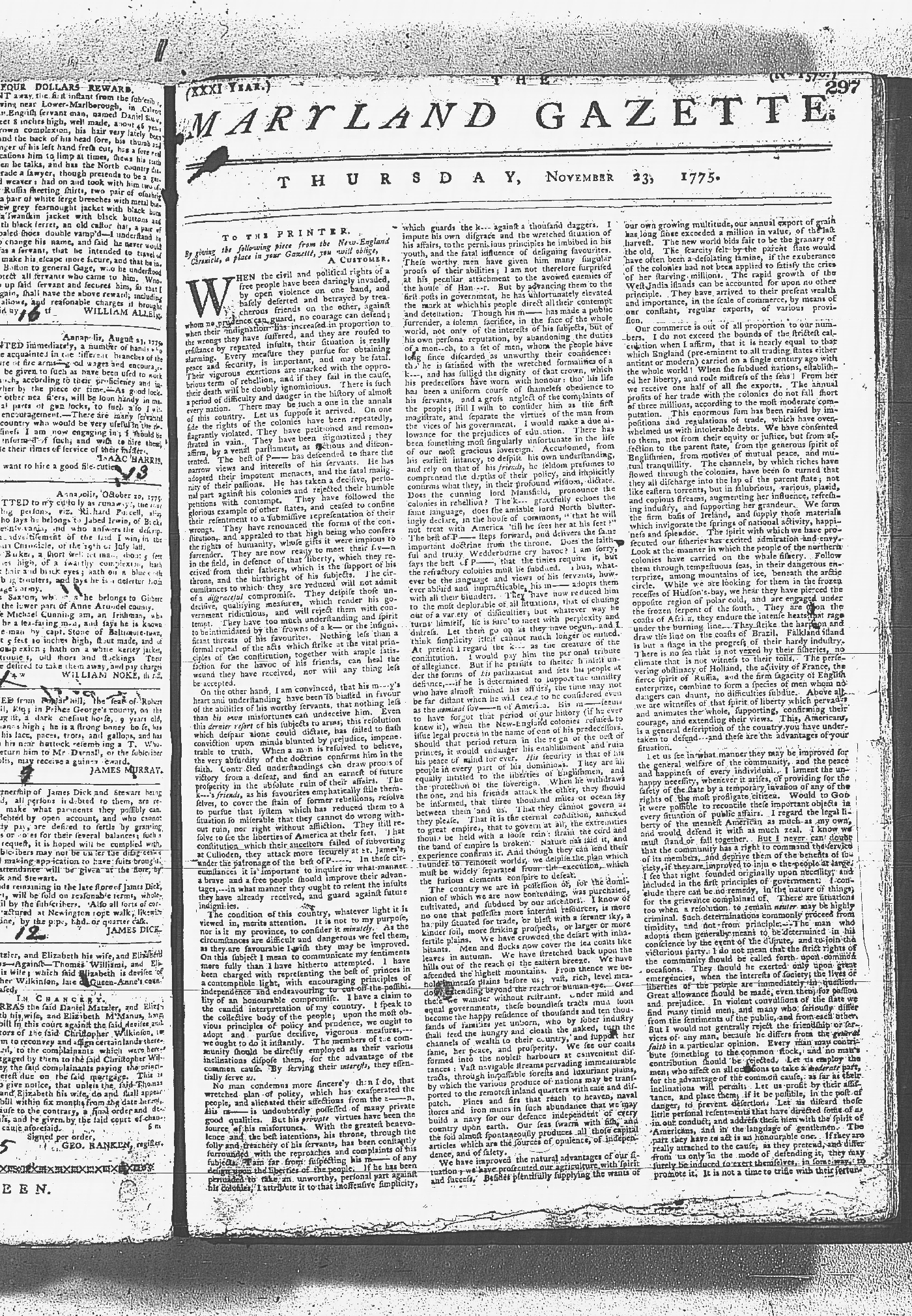 Maryland Gazette Collection MSA SC 2731 January 9, 1772 - September 10, 1779 M 1282 A Publication of the Archives of Maryland Online Image 981 Enlarge and print image (6M) |