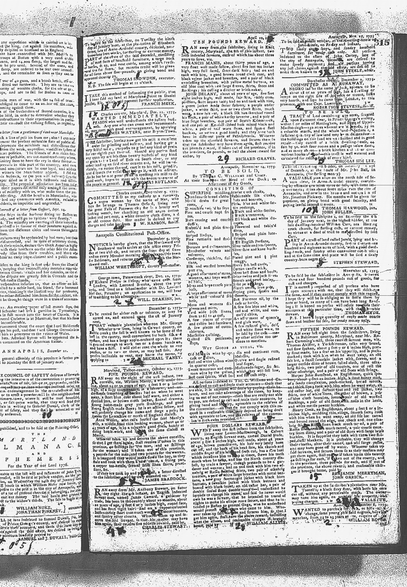 Maryland Gazette Collection MSA SC 2731 January 9, 1772 - September 10, 1779 M 1282 A Publication of the Archives of Maryland Online Image 999 Enlarge and print image (6M) |