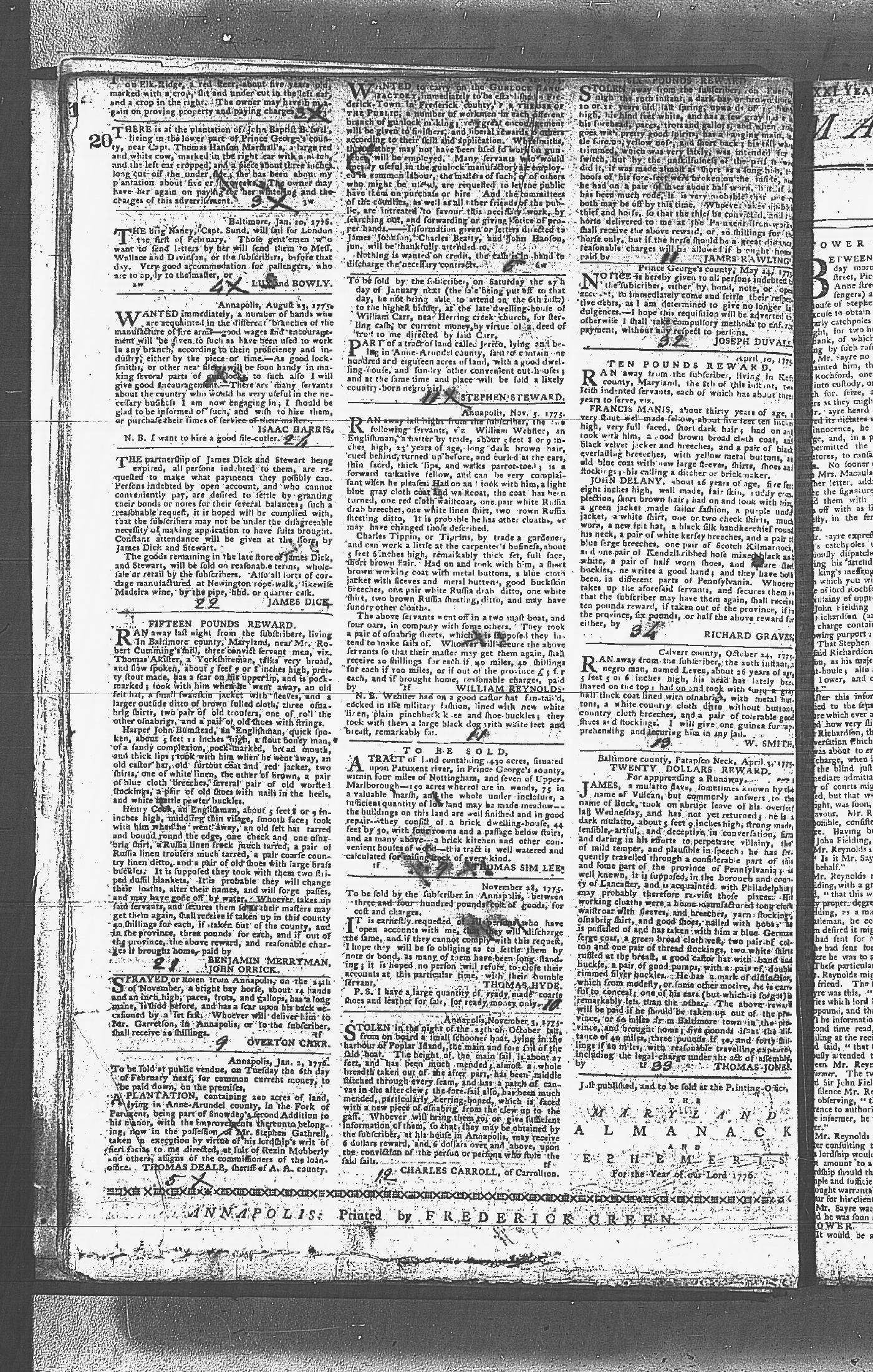 Maryland Gazette Collection MSA SC 2731 January 9, 1772 - September 10, 1779 M 1282 A Publication of the Archives of Maryland Online Image 1026 Enlarge and print image (6M) |