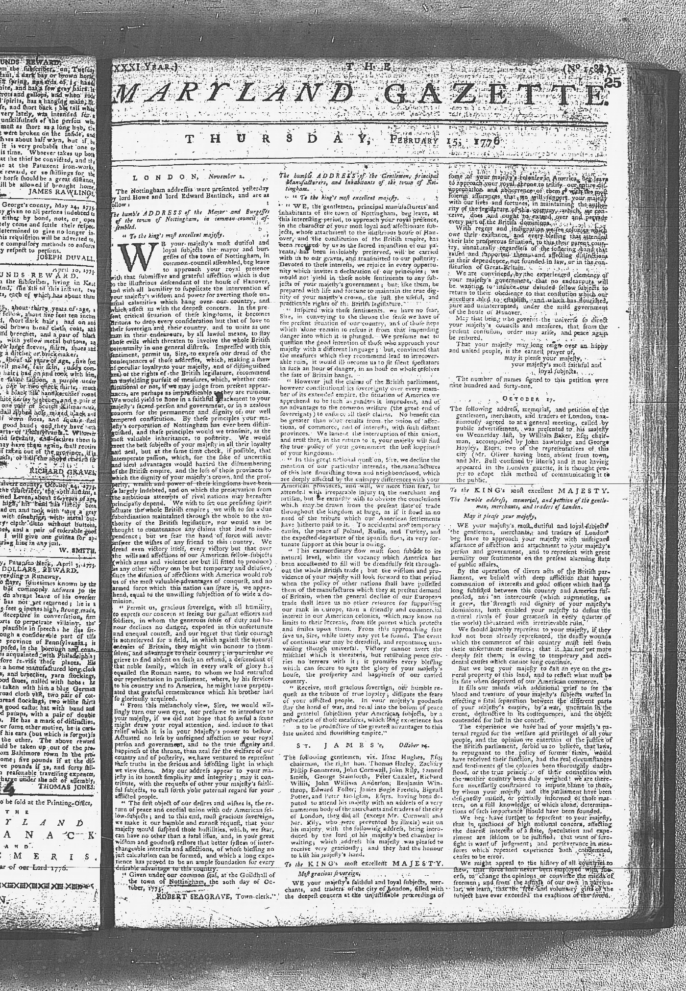 Maryland Gazette Collection MSA SC 2731 January 9, 1772 - September 10, 1779 M 1282 A Publication of the Archives of Maryland Online Image 1031 Enlarge and print image (6M) |