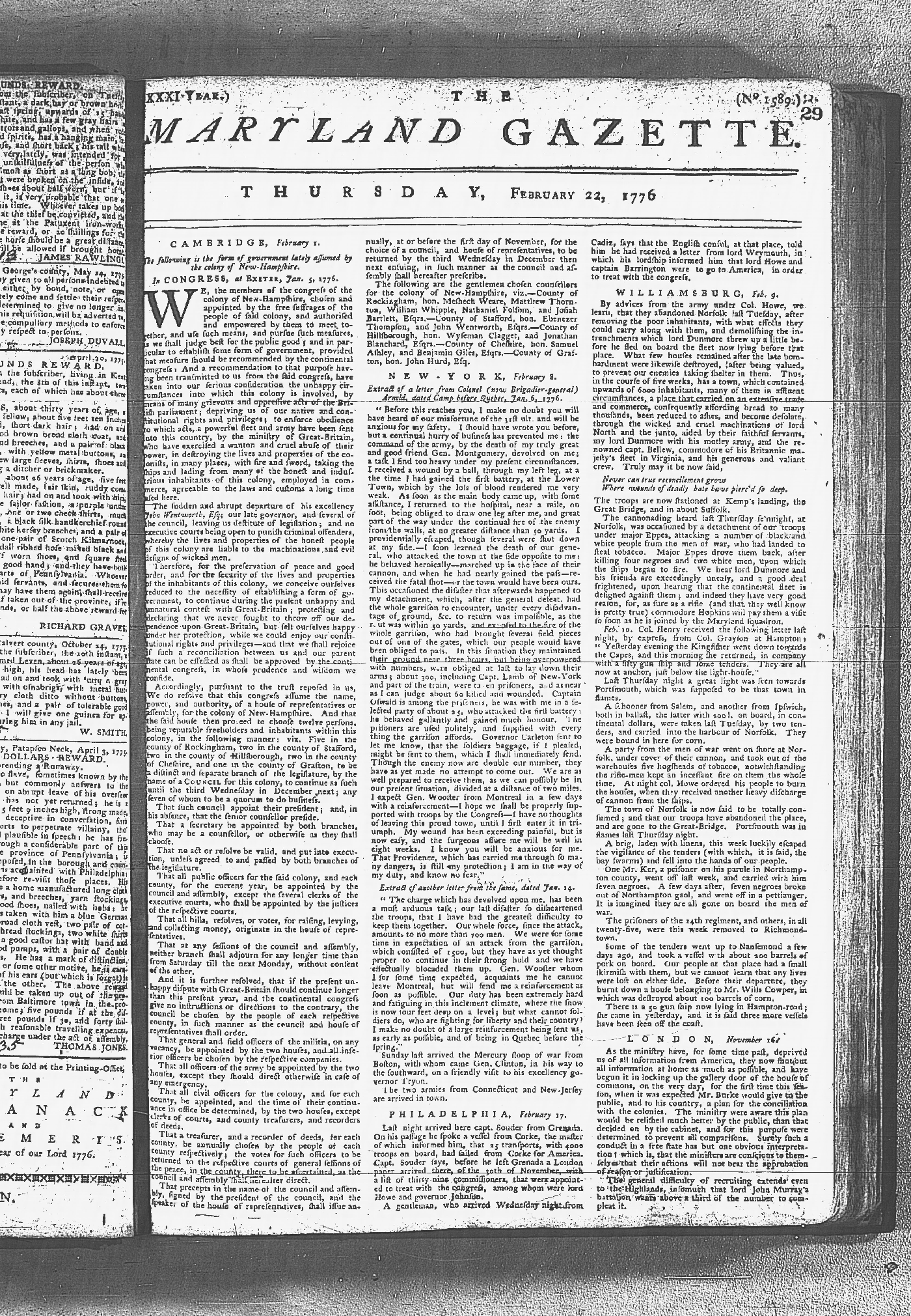 Maryland Gazette Collection MSA SC 2731 January 9, 1772 - September 10, 1779 M 1282 A Publication of the Archives of Maryland Online Image 1035 Enlarge and print image (6M) |
