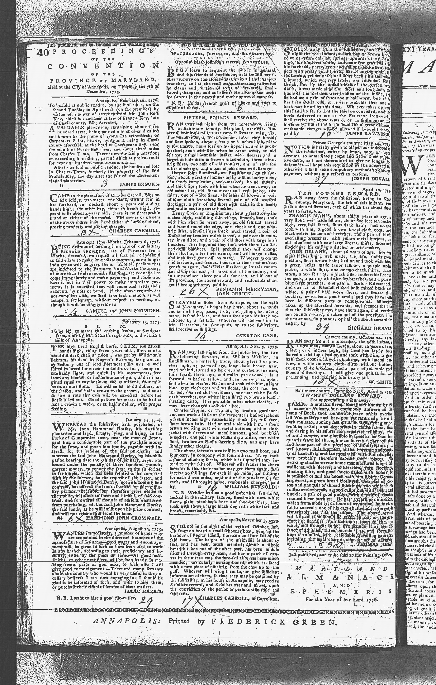Maryland Gazette Collection MSA SC 2731 January 9, 1772 - September 10, 1779 M 1282 A Publication of the Archives of Maryland Online Image 1052 Enlarge and print image (5M) |
