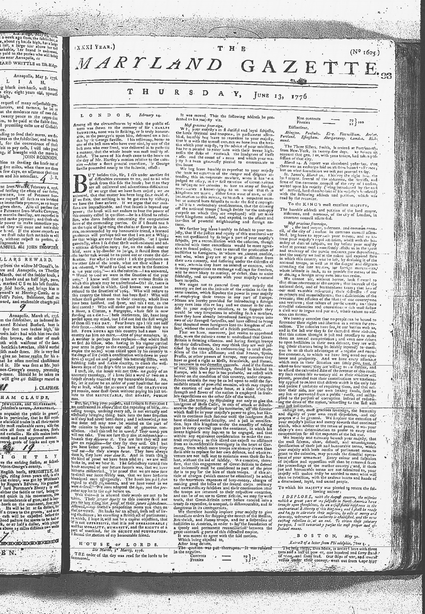 Maryland Gazette Collection MSA SC 2731 January 9, 1772 - September 10, 1779 M 1282 A Publication of the Archives of Maryland Online Image 1115 Enlarge and print image (6M) |
