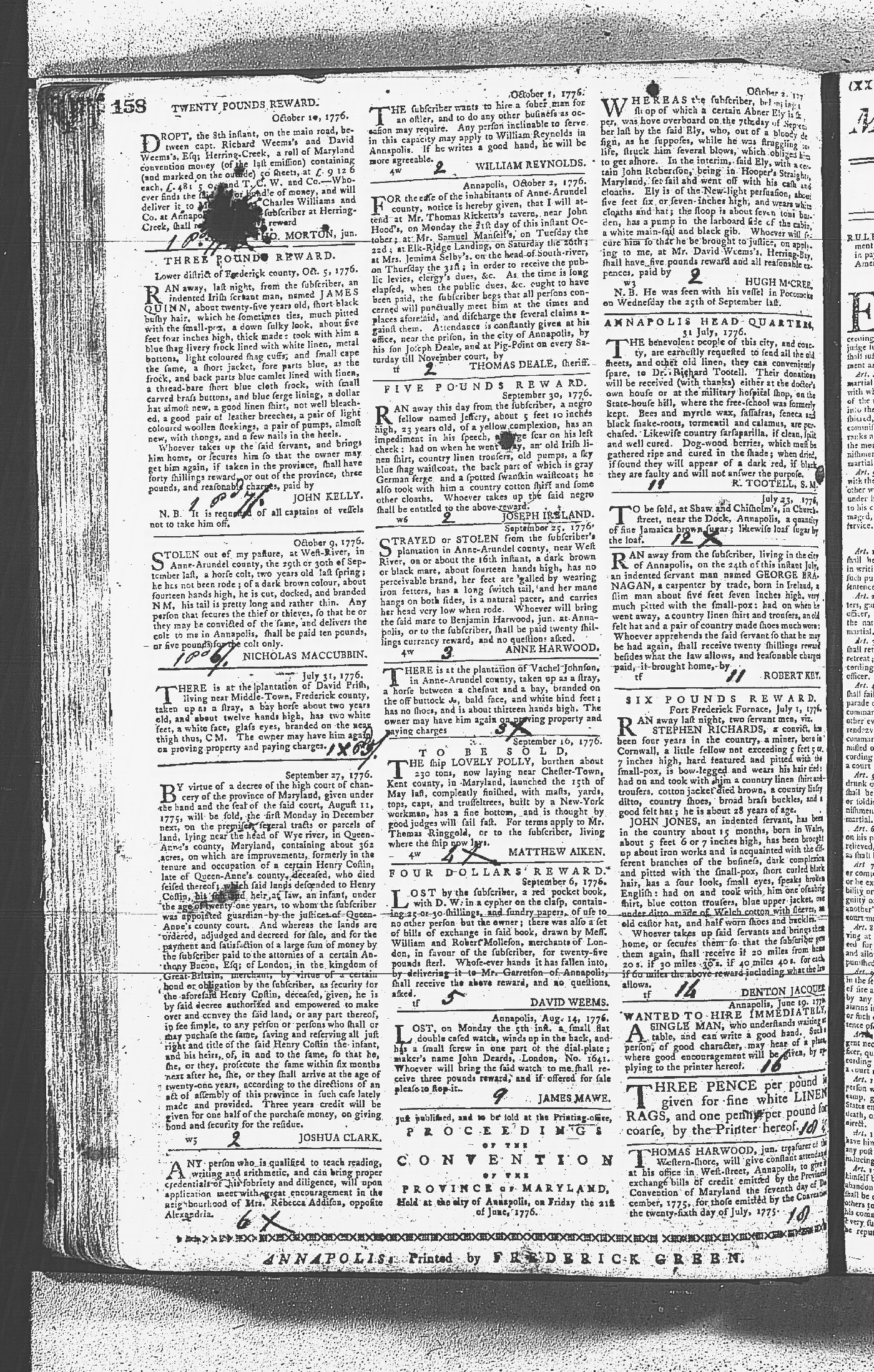 Maryland Gazette Collection MSA SC 2731 January 9, 1772 - September 10, 1779 M 1282 A Publication of the Archives of Maryland Online Image 1186 Enlarge and print image (5M) |