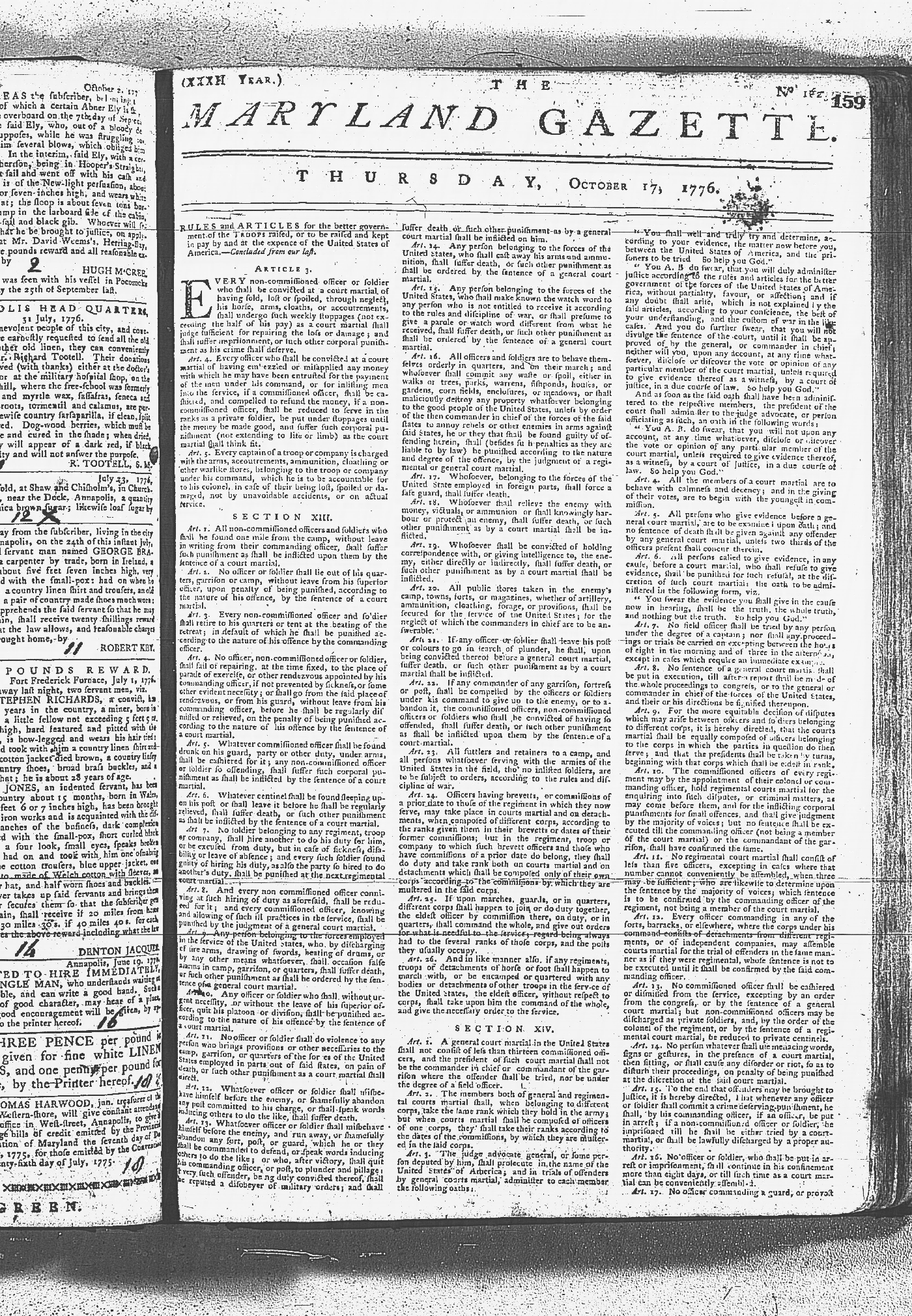 Maryland Gazette Collection MSA SC 2731 January 9, 1772 - September 10, 1779 M 1282 A Publication of the Archives of Maryland Online Image 1187 Enlarge and print image (6M) |