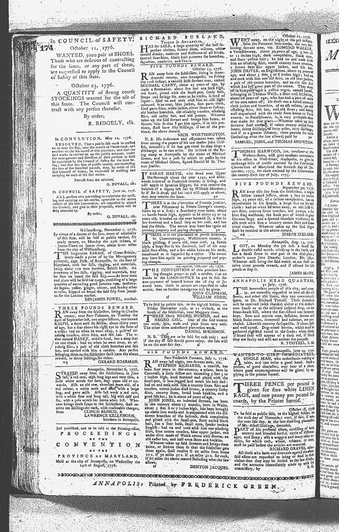 Maryland Gazette Collection MSA SC 2731 January 9, 1772 - September 10, 1779 M 1282 A Publication of the Archives of Maryland Online Image 1204 Enlarge and print image (5M) |
