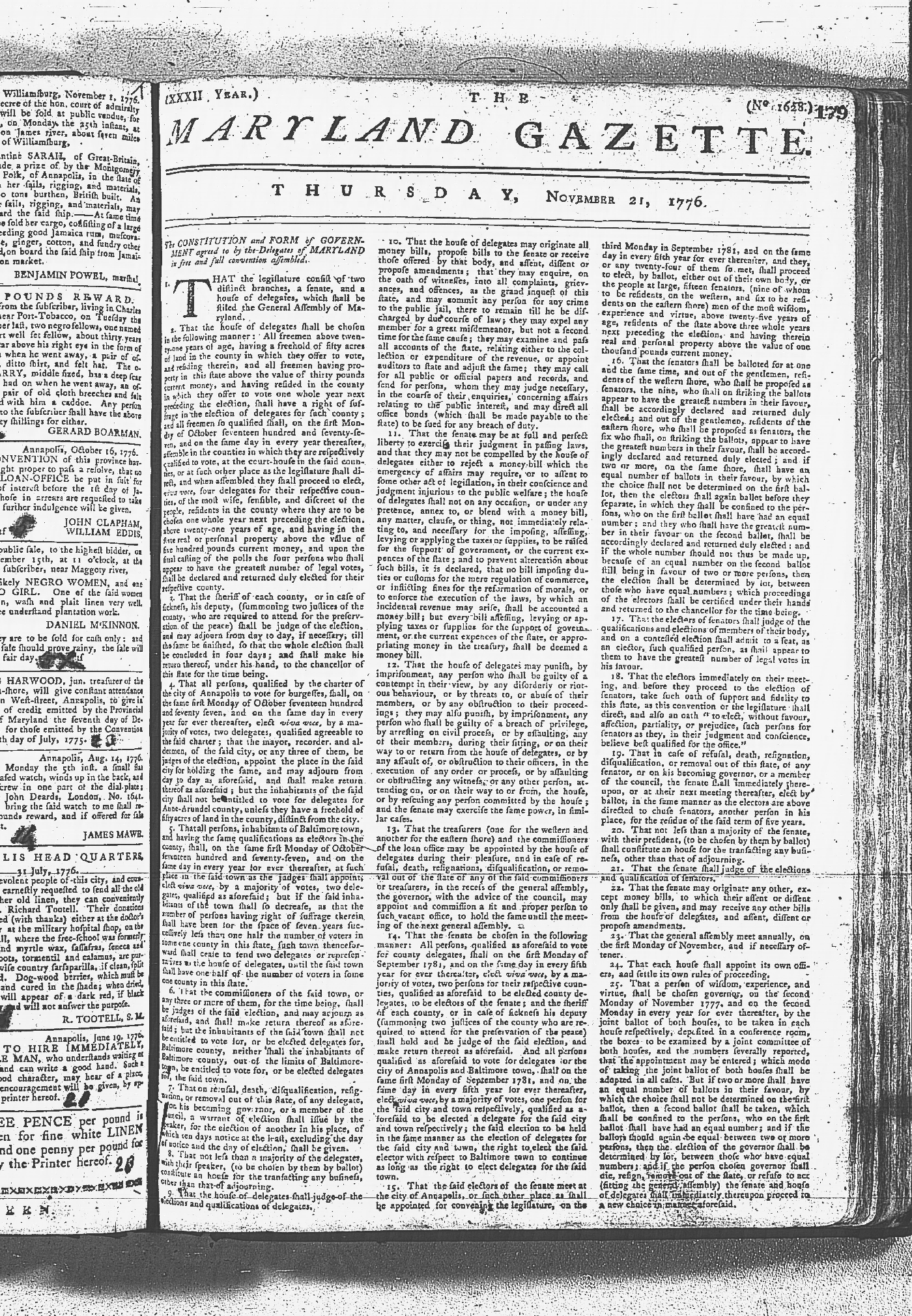 Maryland Gazette Collection MSA SC 2731 January 9, 1772 - September 10, 1779 M 1282 A Publication of the Archives of Maryland Online Image 1209 Enlarge and print image (6M) |