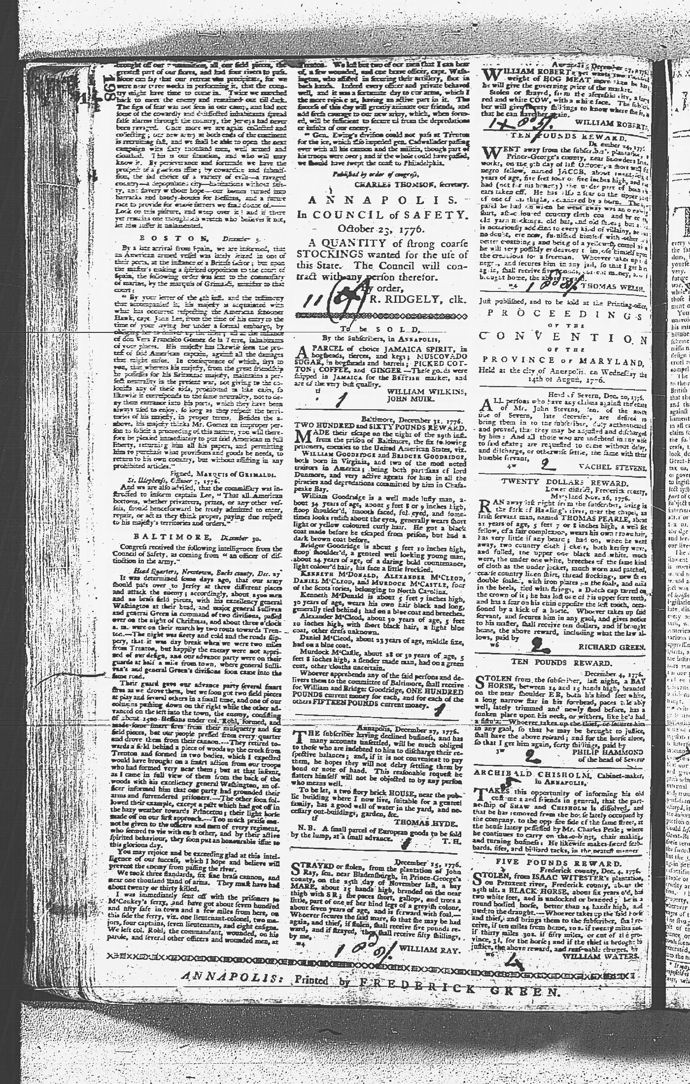 Maryland Gazette Collection MSA SC 2731 January 9, 1772 - September 10, 1779 M 1282 A Publication of the Archives of Maryland Online Image 1228 Enlarge and print image (5M) |