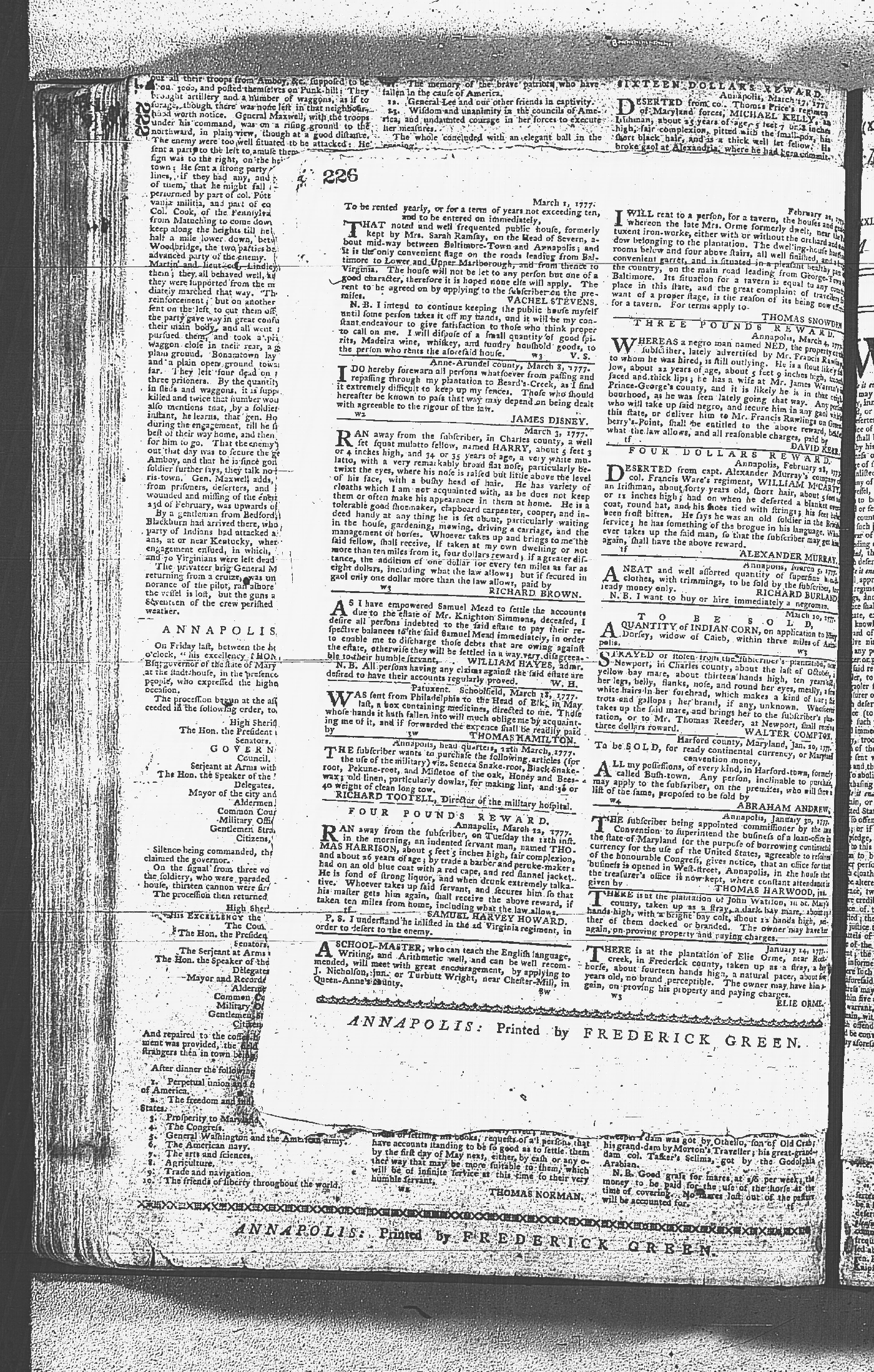 Maryland Gazette Collection MSA SC 2731 January 9, 1772 - September 10, 1779 M 1282 A Publication of the Archives of Maryland Online Image 1256 Enlarge and print image (5M) |