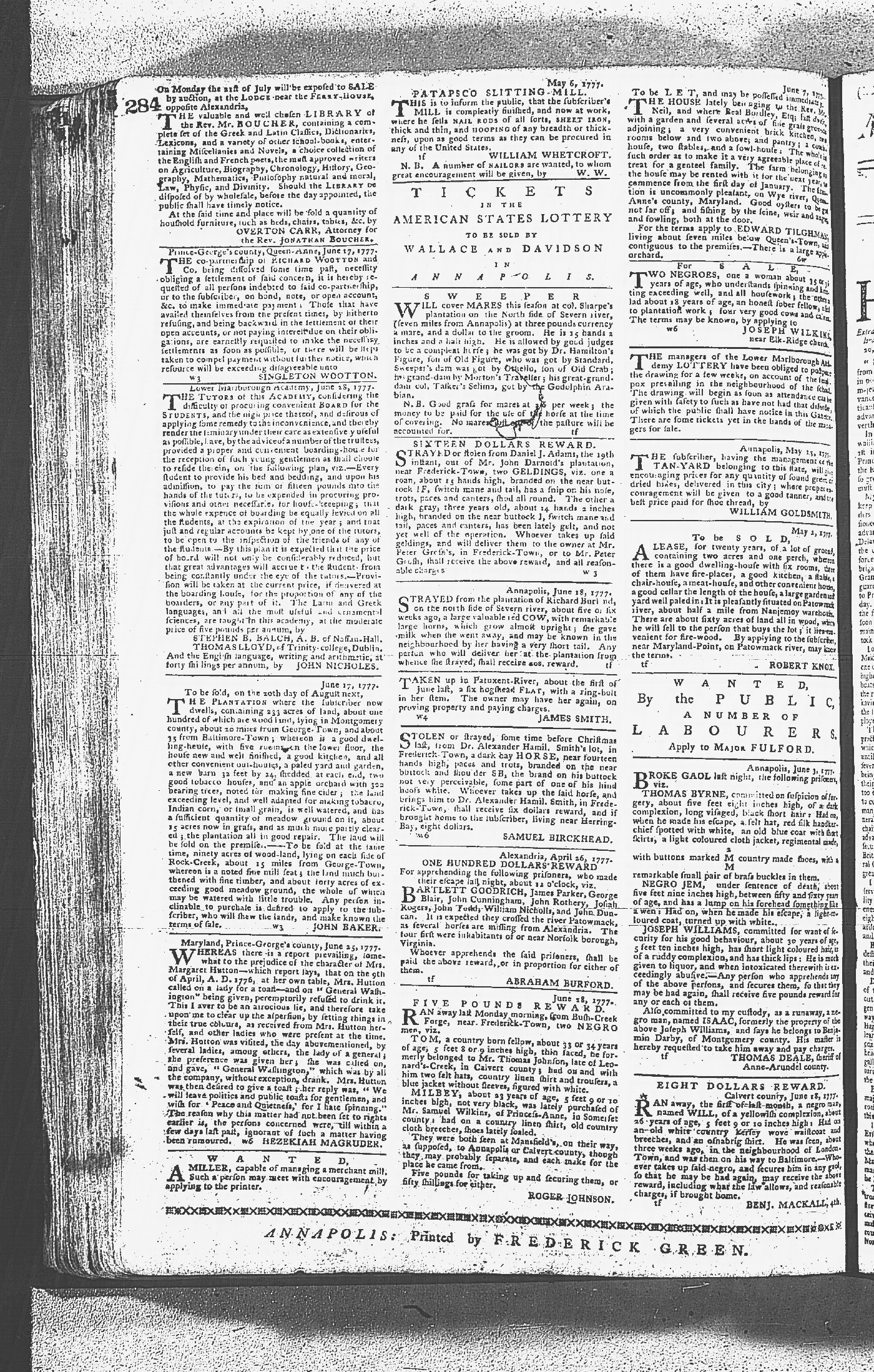 Maryland Gazette Collection MSA SC 2731 January 9, 1772 - September 10, 1779 M 1282 A Publication of the Archives of Maryland Online Image 1320 Enlarge and print image (5M) |