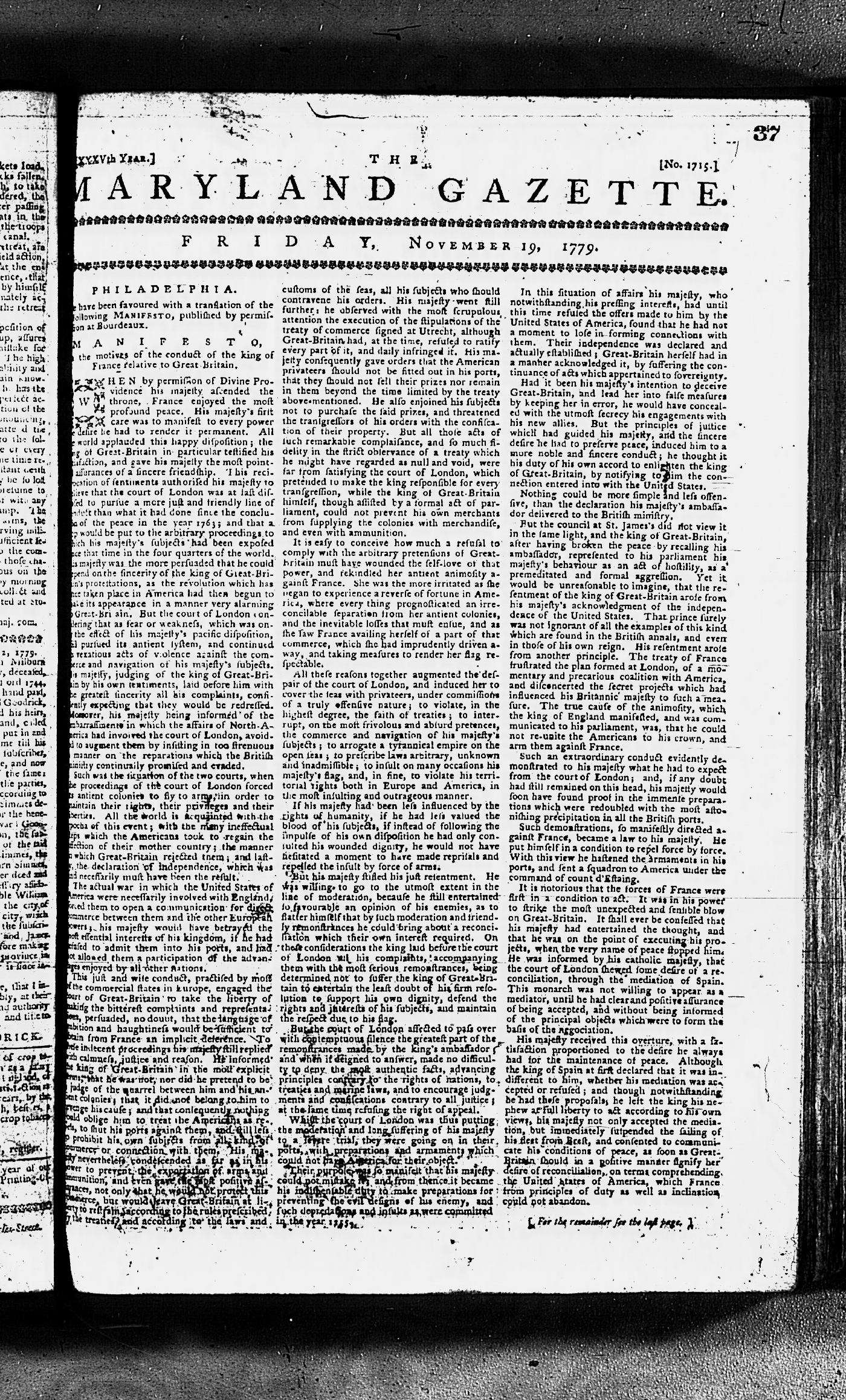 Maryland Gazette Collection MSA SC 2731 September 17, 1779 - June 28, 1787 M 1283 A Publication of the Archives of Maryland Online Image 41 Enlarge and print image (3M) |