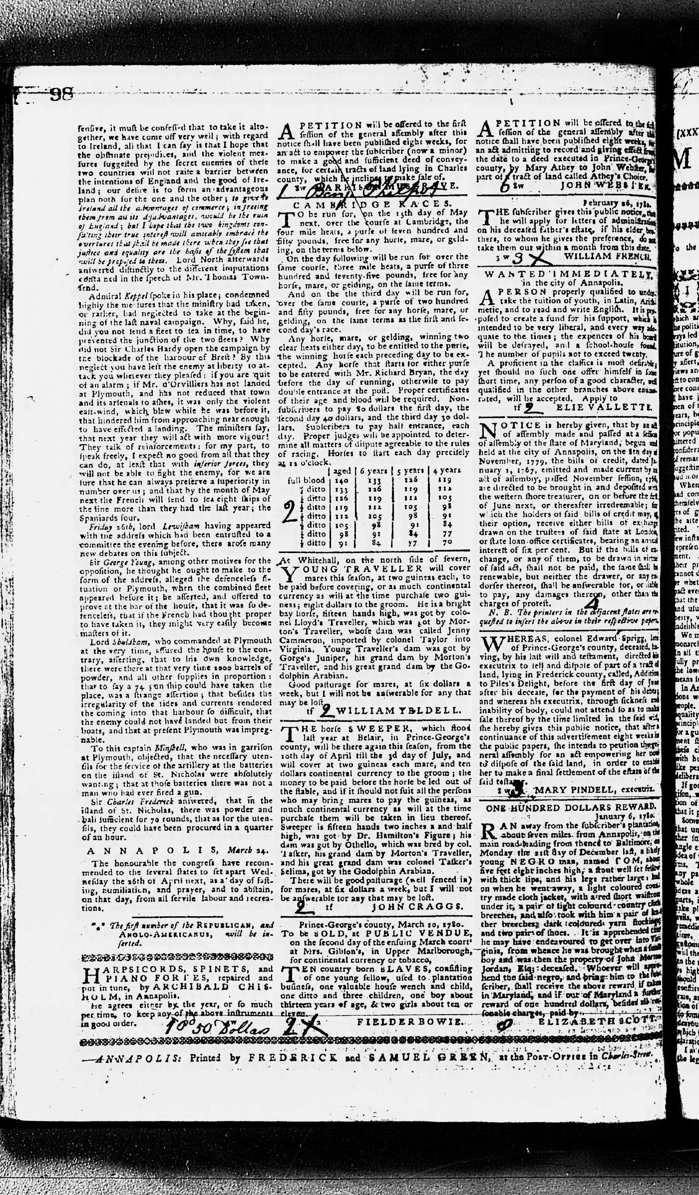 Maryland Gazette Collection MSA SC 2731 September 17, 1779 - June 28, 1787 M 1283 A Publication of the Archives of Maryland Online Image 106 Enlarge and print image (2M) |