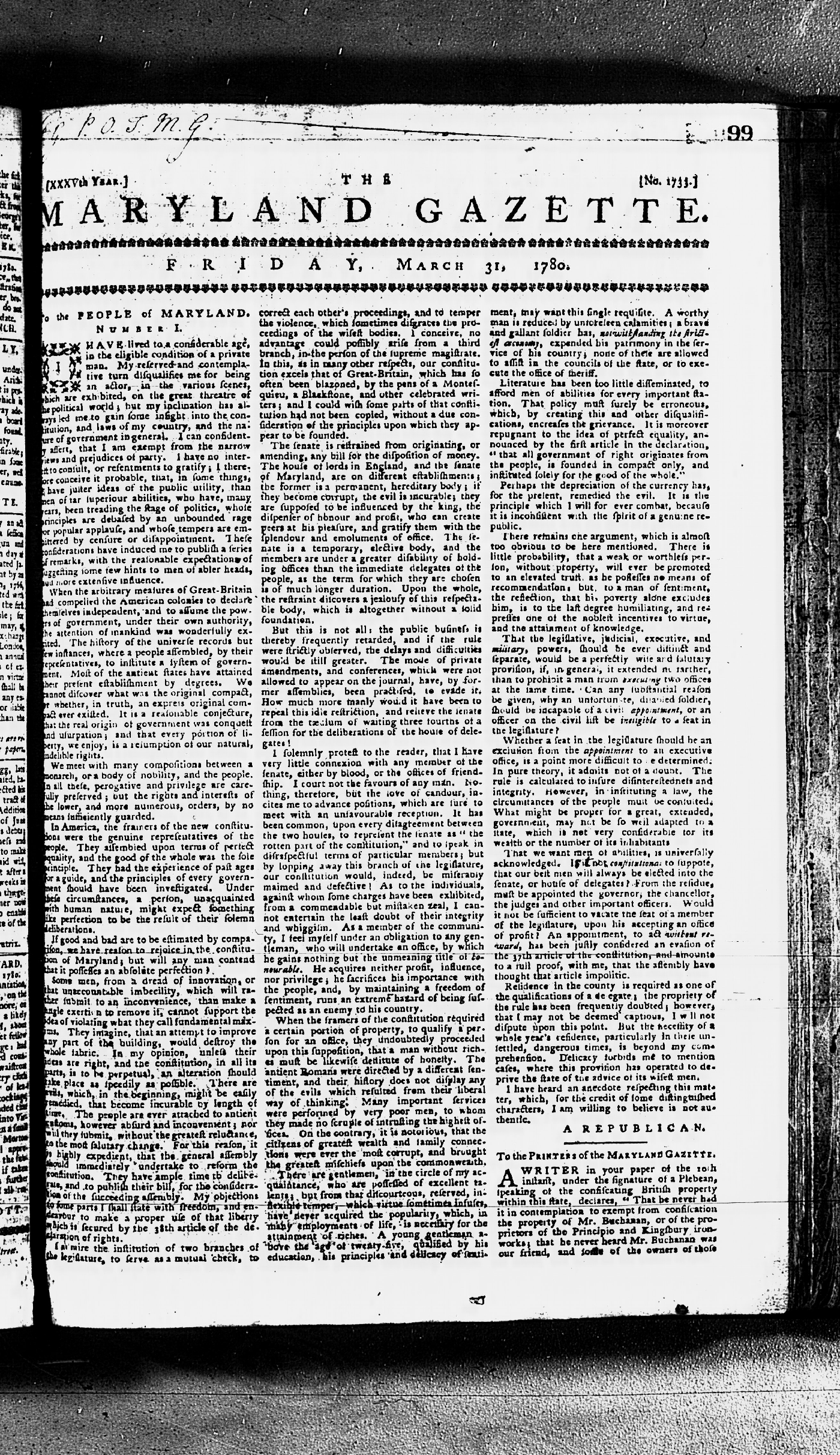 Maryland Gazette Collection MSA SC 2731 September 17, 1779 - June 28, 1787 M 1283 A Publication of the Archives of Maryland Online Image 107 Enlarge and print image (3M) |