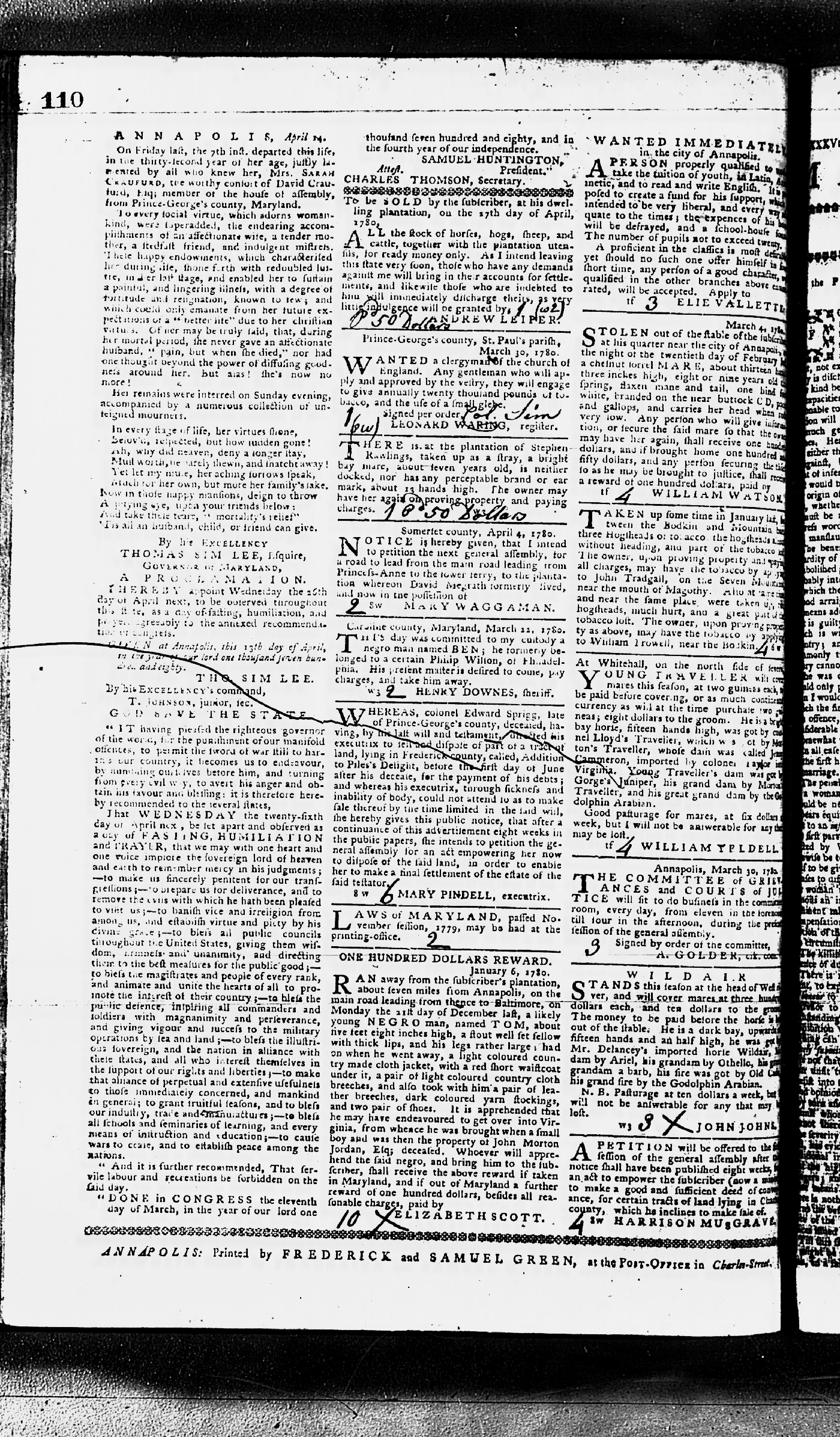 Maryland Gazette Collection MSA SC 2731 September 17, 1779 - June 28, 1787 M 1283 A Publication of the Archives of Maryland Online Image 118 Enlarge and print image (2M) |
