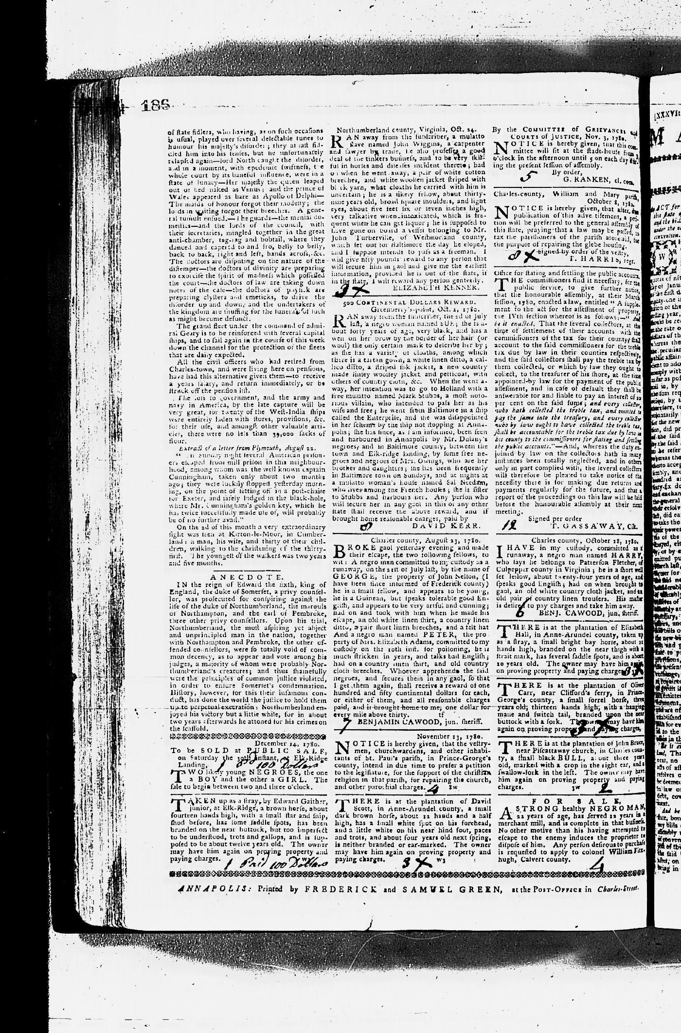 Maryland Gazette Collection MSA SC 2731 September 17, 1779 - June 28, 1787 M 1283 A Publication of the Archives of Maryland Online Image 210 Enlarge and print image (3M) |