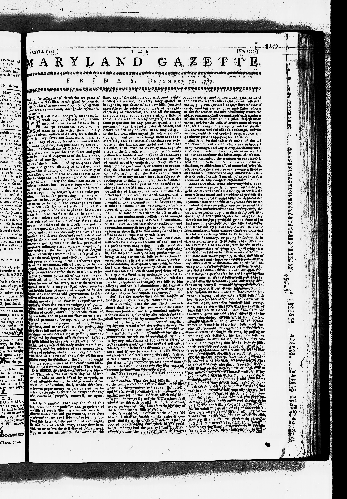 Maryland Gazette Collection MSA SC 2731 September 17, 1779 - June 28, 1787 M 1283 A Publication of the Archives of Maryland Online Image 211 Enlarge and print image (3M) |