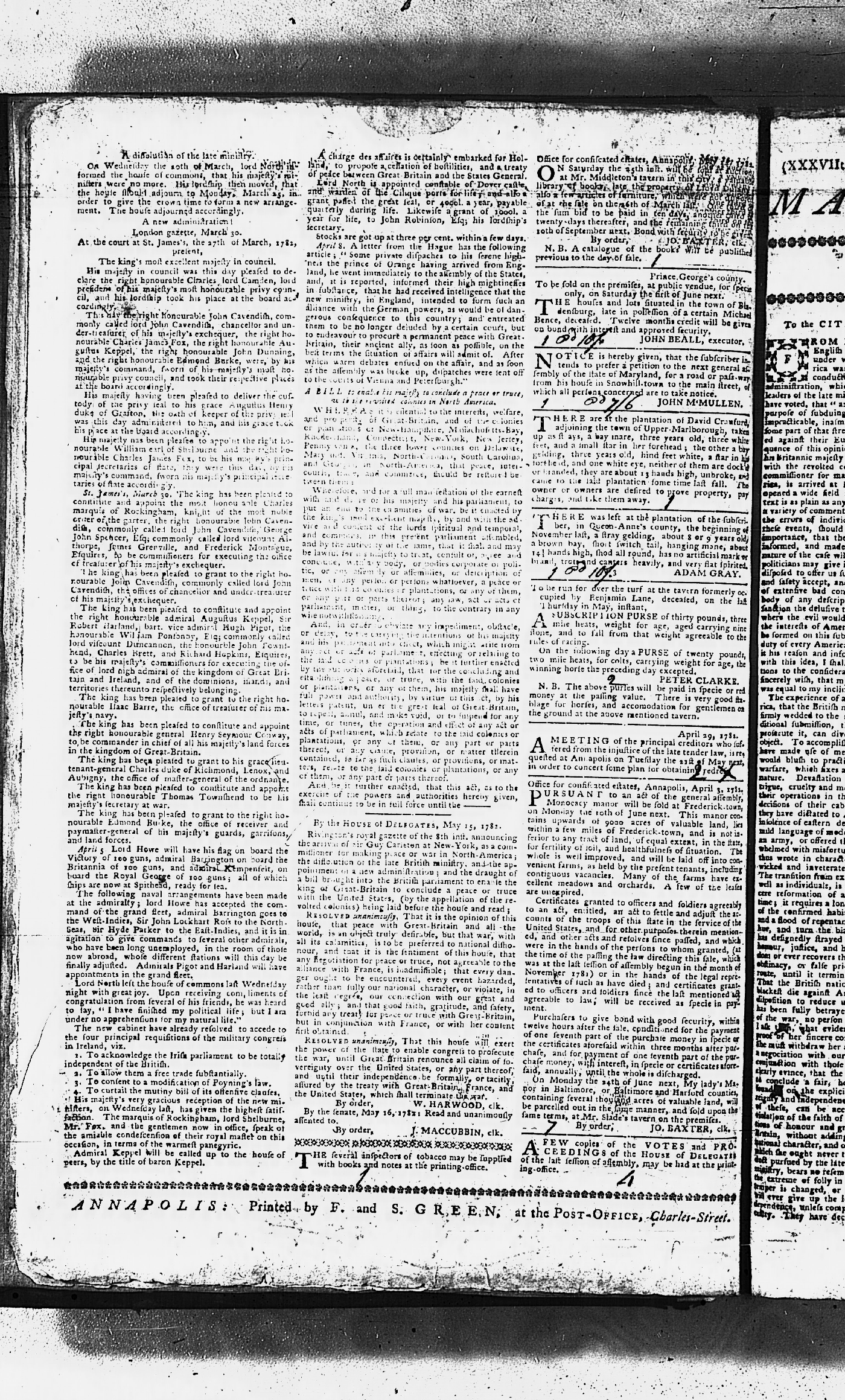 Maryland Gazette Collection MSA SC 2731 September 17, 1779 - June 28, 1787 M 1283 A Publication of the Archives of Maryland Online Image 404 Enlarge and print image (4M) |