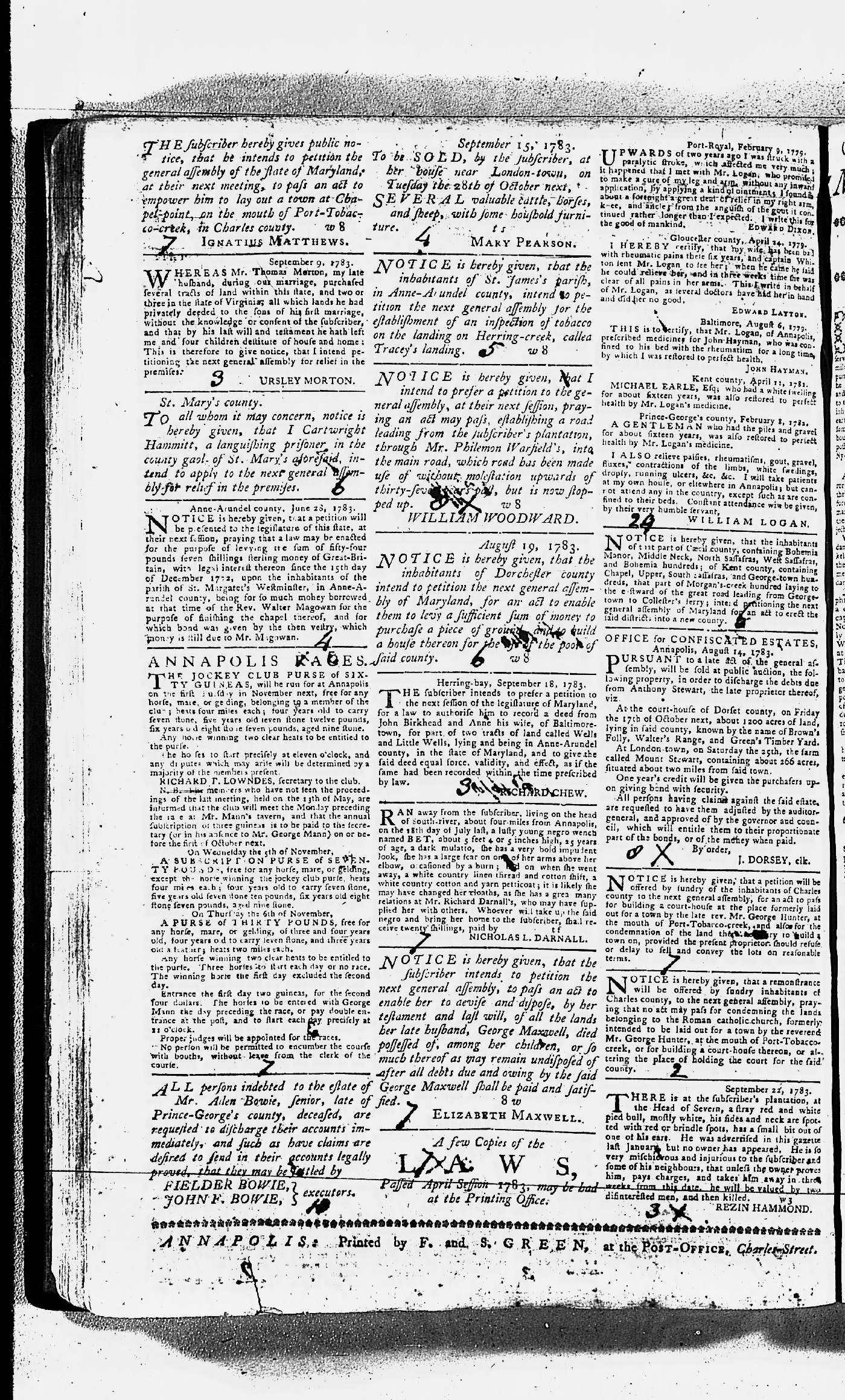 Maryland Gazette Collection MSA SC 2731 September 17, 1779 - June 28, 1787 M 1283 A Publication of the Archives of Maryland Online Image 618 Enlarge and print image (3M) |