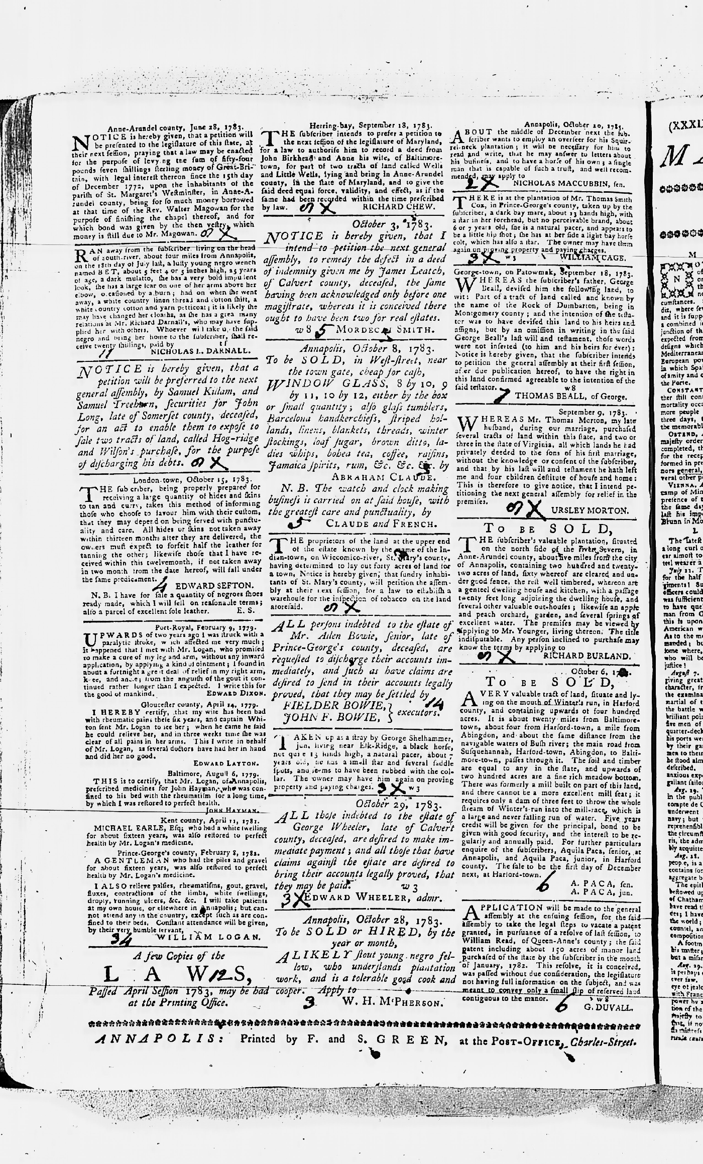 Maryland Gazette Collection MSA SC 2731 September 17, 1779 - June 28, 1787 M 1283 A Publication of the Archives of Maryland Online Image 640 Enlarge and print image (3M) |