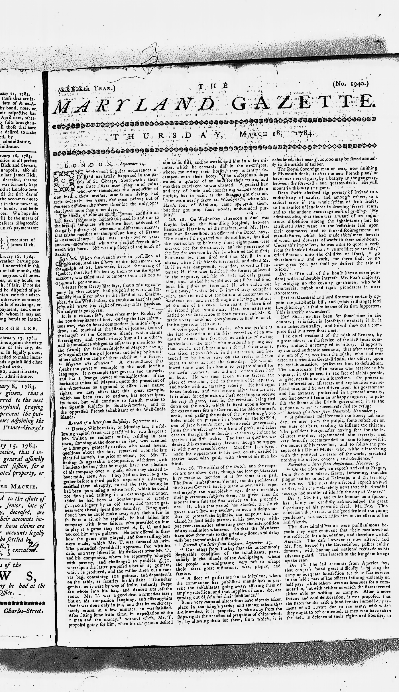 Maryland Gazette Collection MSA SC 2731 September 17, 1779 - June 28, 1787 M 1283 A Publication of the Archives of Maryland Online Image 721 Enlarge and print image (3M) |