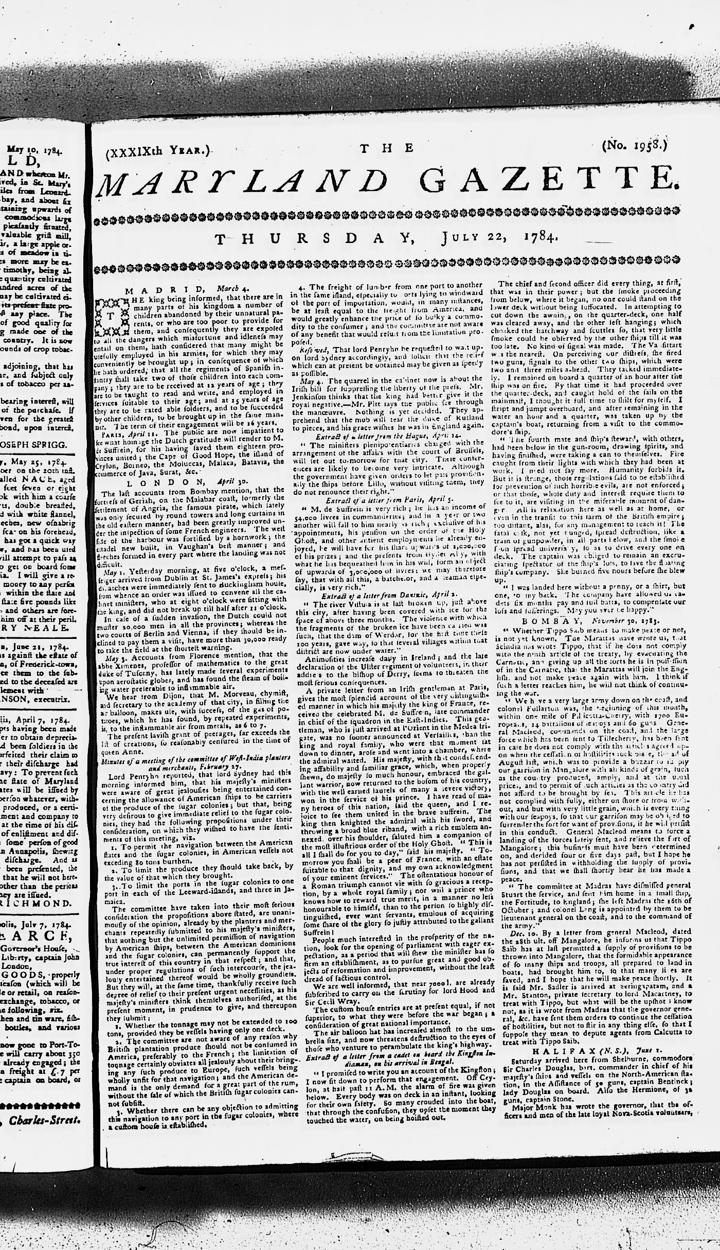 Maryland Gazette Collection MSA SC 2731 September 17, 1779 - June 28, 1787 M 1283 A Publication of the Archives of Maryland Online Image 801 Enlarge and print image (3M) |