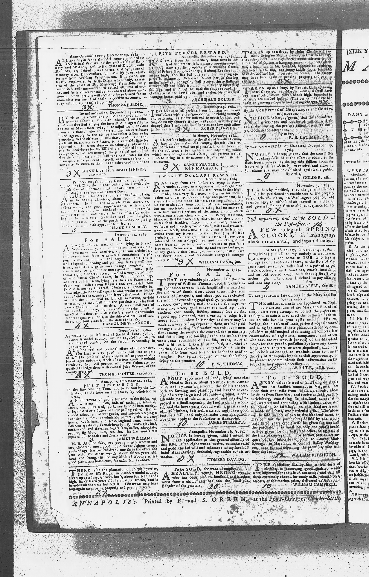 Maryland Gazette Collection MSA SC 2731 September 17, 1779 - June 28, 1787 M 1283 A Publication of the Archives of Maryland Online Image 904 Enlarge and print image (3M) |