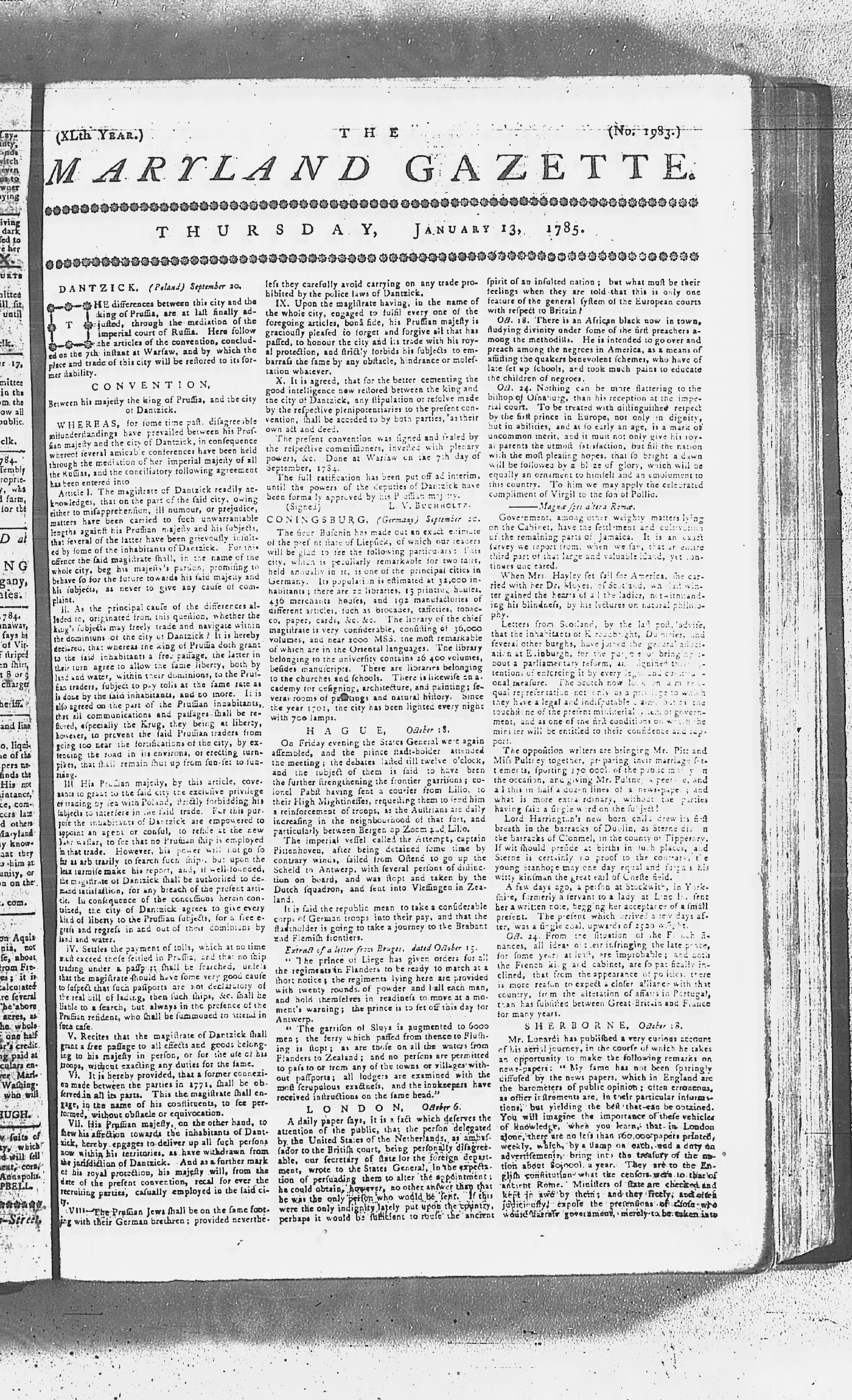 Maryland Gazette Collection MSA SC 2731 September 17, 1779 - June 28, 1787 M 1283 A Publication of the Archives of Maryland Online Image 905 Enlarge and print image (3M) |