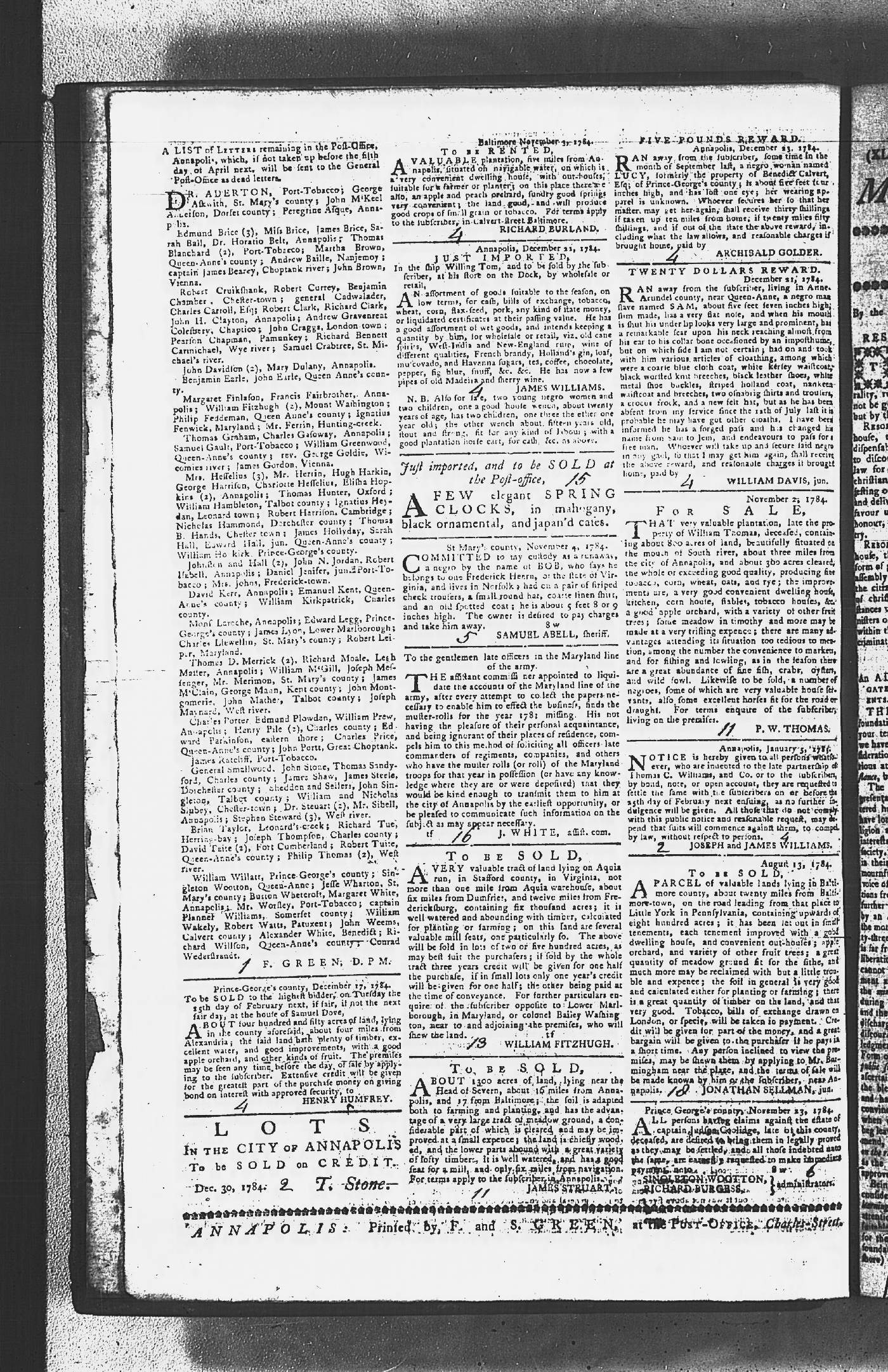 Maryland Gazette Collection MSA SC 2731 September 17, 1779 - June 28, 1787 M 1283 A Publication of the Archives of Maryland Online Image 908 Enlarge and print image (3M) |