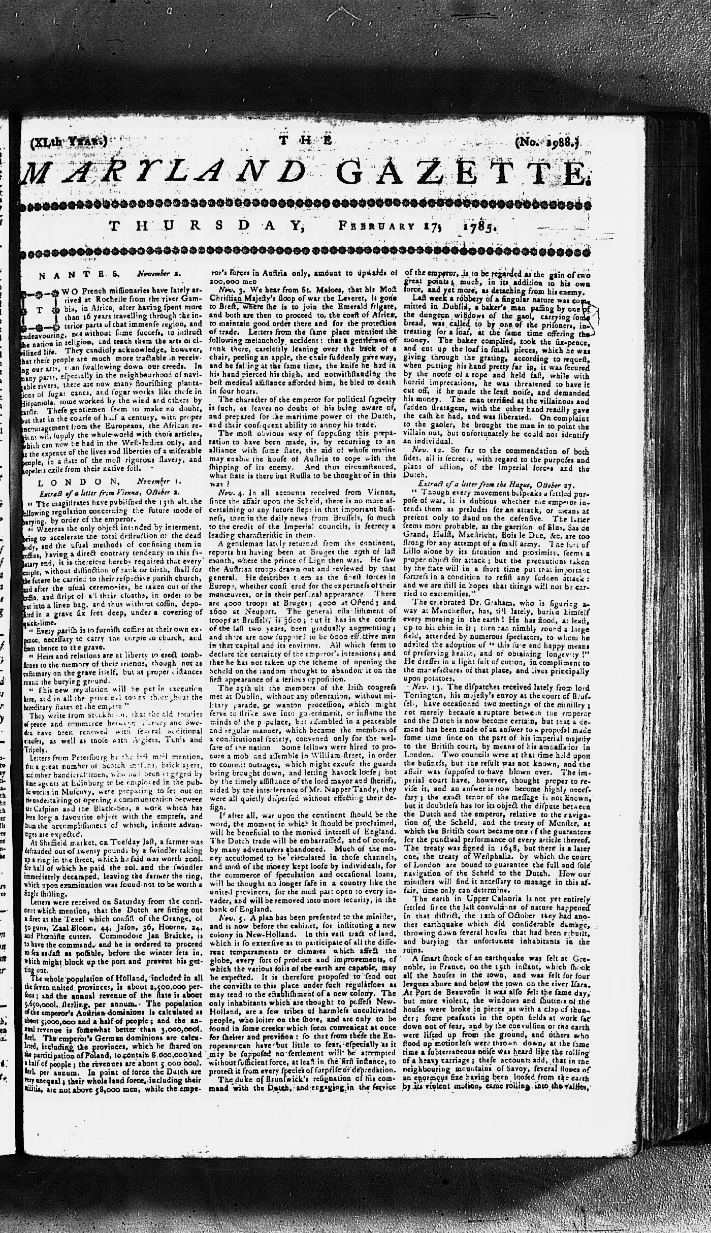 Maryland Gazette Collection MSA SC 2731 September 17, 1779 - June 28, 1787 M 1283 A Publication of the Archives of Maryland Online Image 929 Enlarge and print image (3M) |