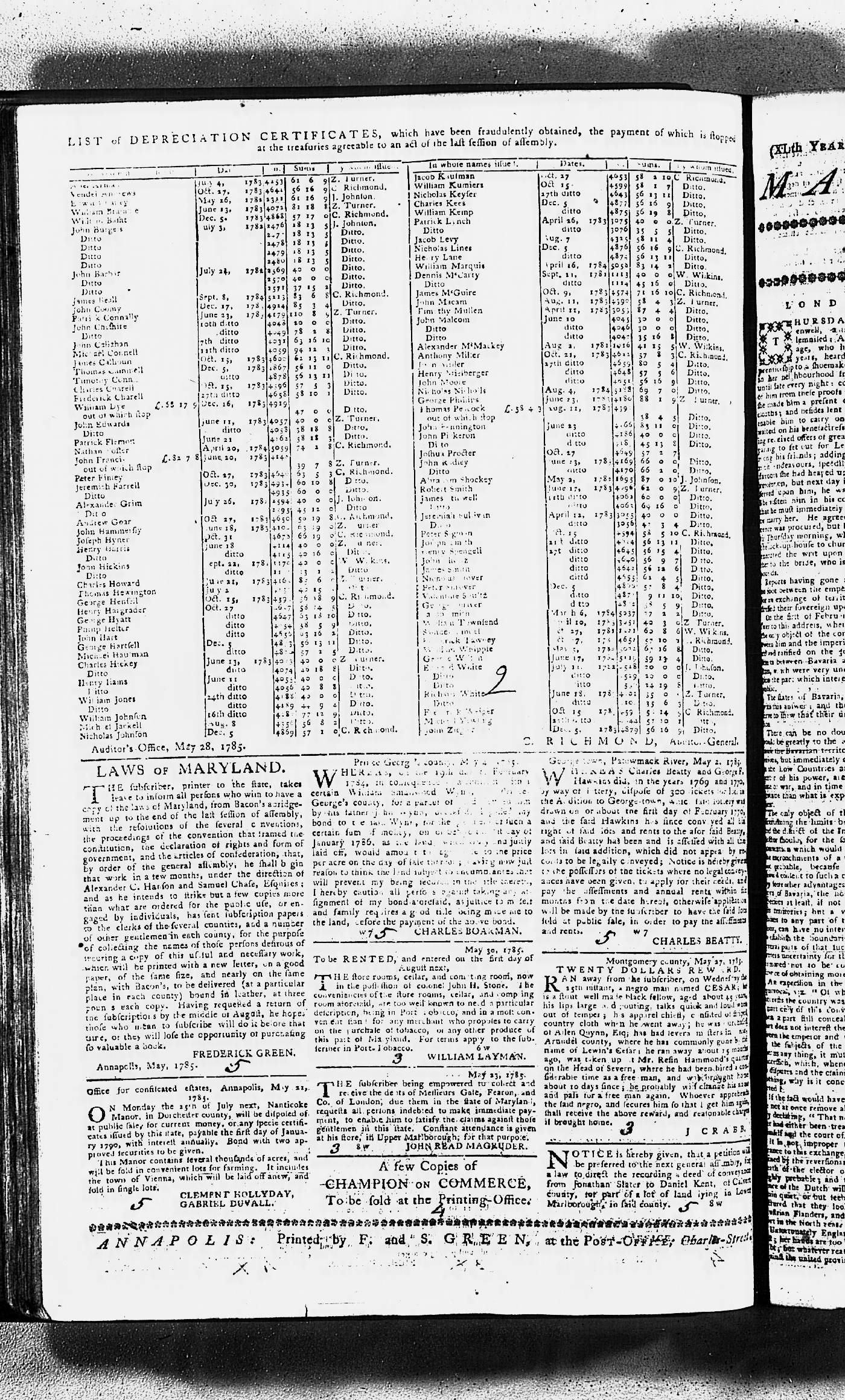 Maryland Gazette Collection MSA SC 2731 September 17, 1779 - June 28, 1787 M 1283 A Publication of the Archives of Maryland Online Image 1010 Enlarge and print image (3M) |