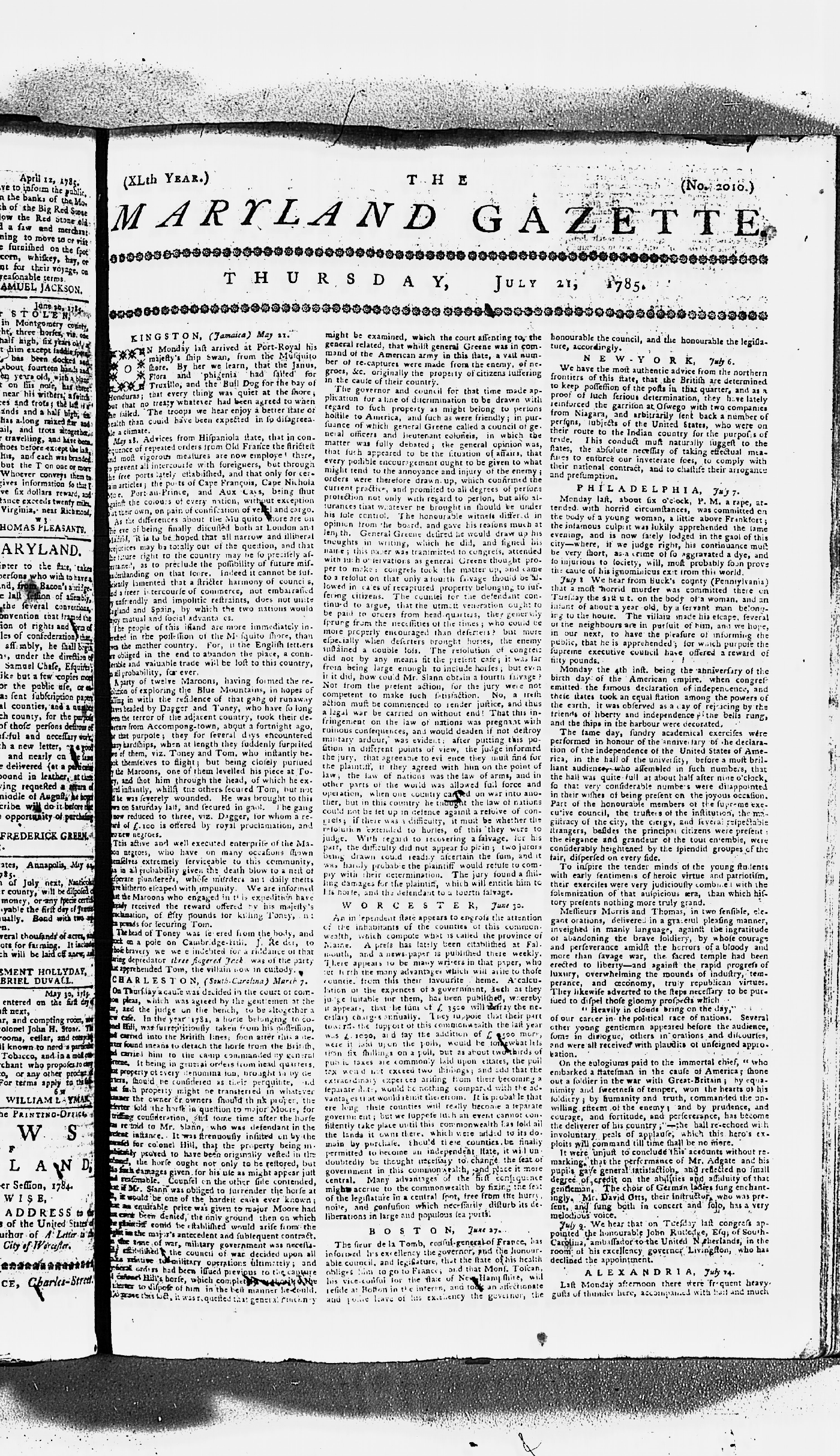 Maryland Gazette Collection MSA SC 2731 September 17, 1779 - June 28, 1787 M 1283 A Publication of the Archives of Maryland Online Image 1029 Enlarge and print image (3M) |