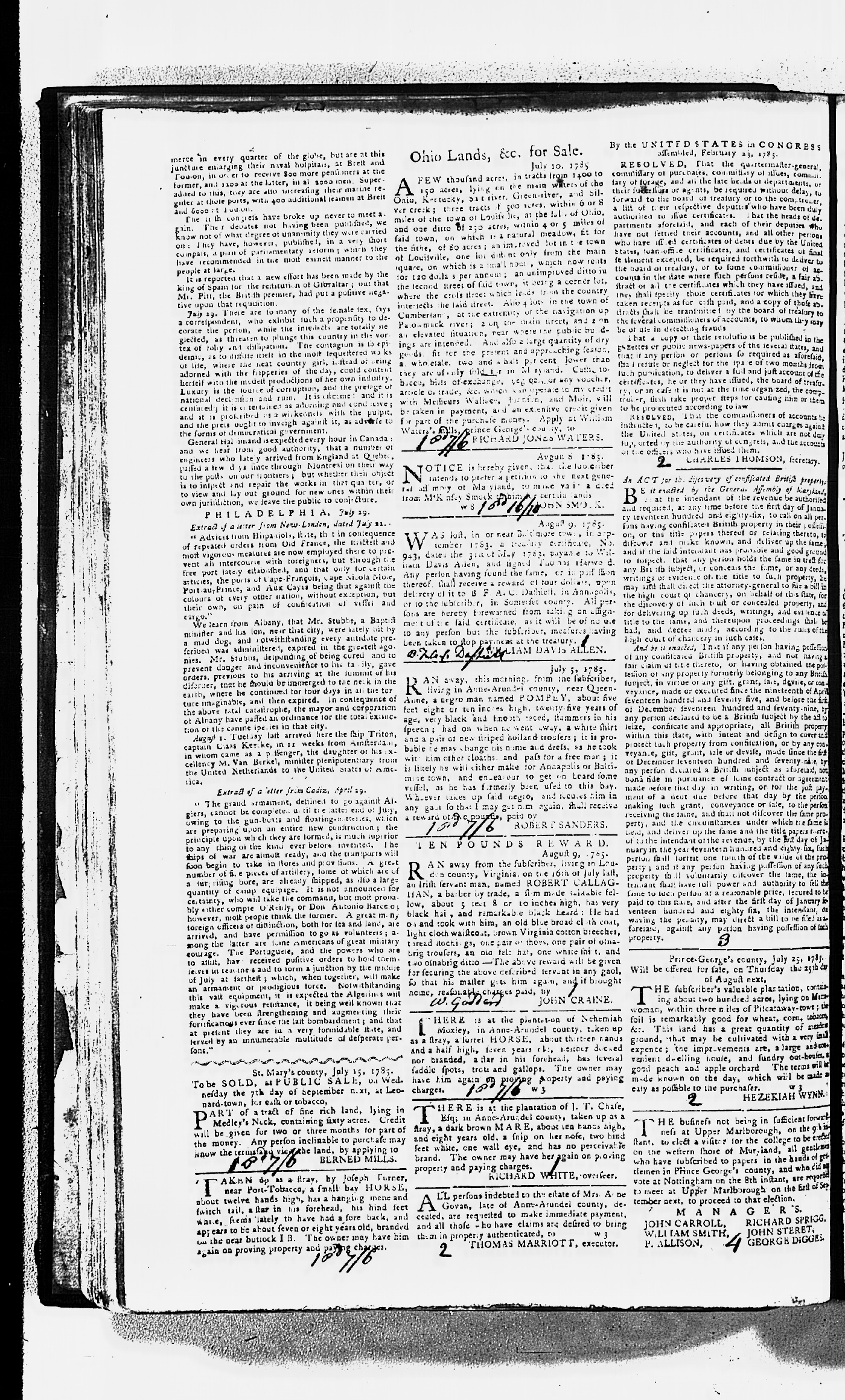 Maryland Gazette Collection MSA SC 2731 September 17, 1779 - June 28, 1787 M 1283 A Publication of the Archives of Maryland Online Image 1042 Enlarge and print image (3M) |