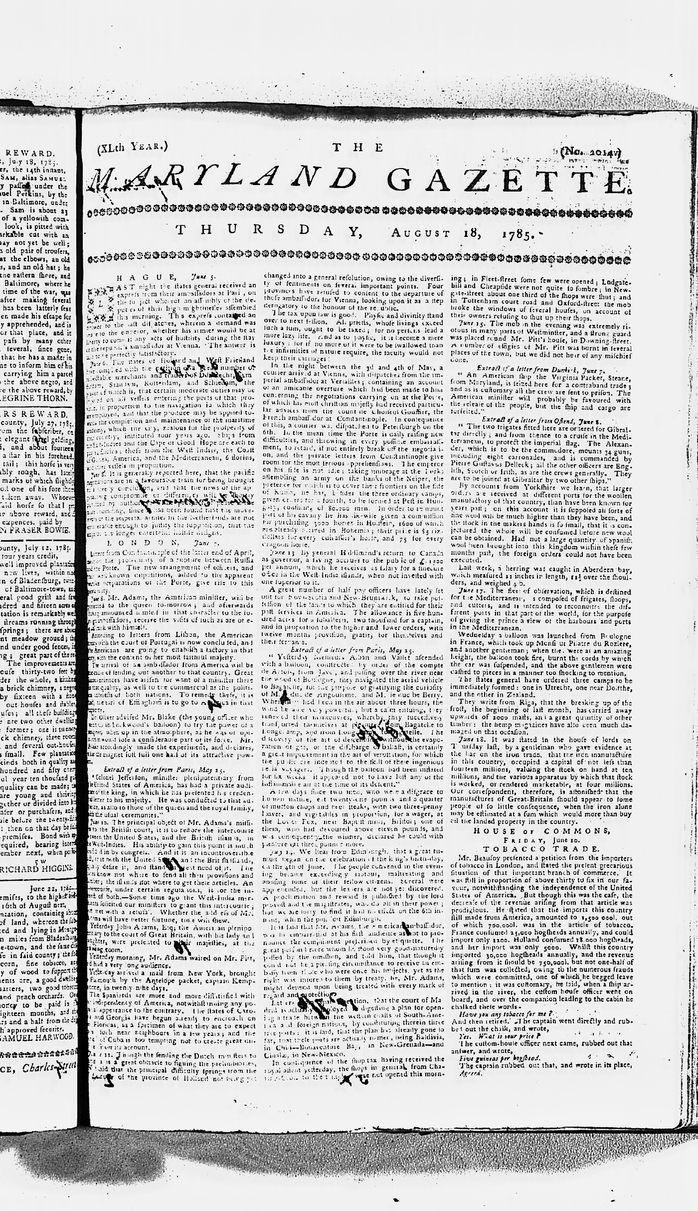 Maryland Gazette Collection MSA SC 2731 September 17, 1779 - June 28, 1787 M 1283 A Publication of the Archives of Maryland Online Image 1045 Enlarge and print image (3M) |