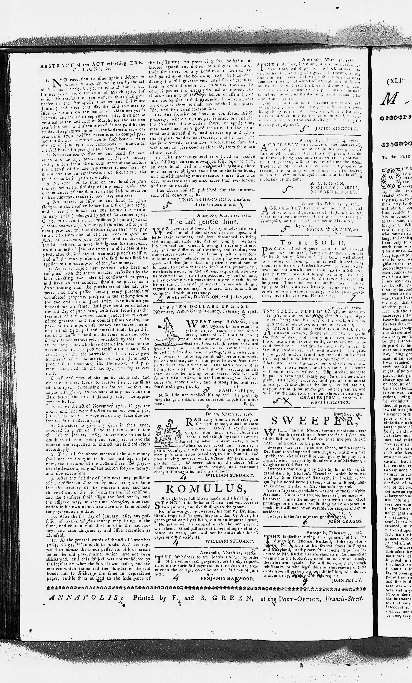 Maryland Gazette Collection MSA SC 2731 September 17, 1779 - June 28, 1787 M 1283 A Publication of the Archives of Maryland Online Image 1200 Enlarge and print image (3M) |
